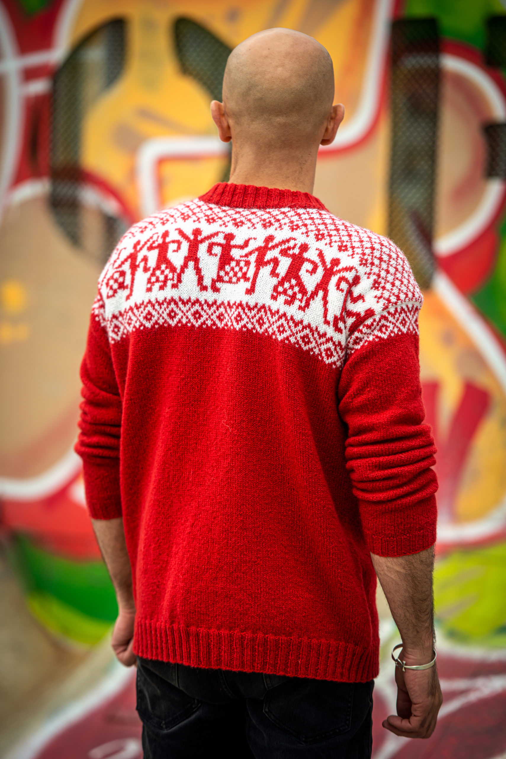 Garnpakken leveres i rødt som vist. Ønsker du en annen fare, skriv i kommentarfeltet ved utsjekk hvilken farge du ønsker.