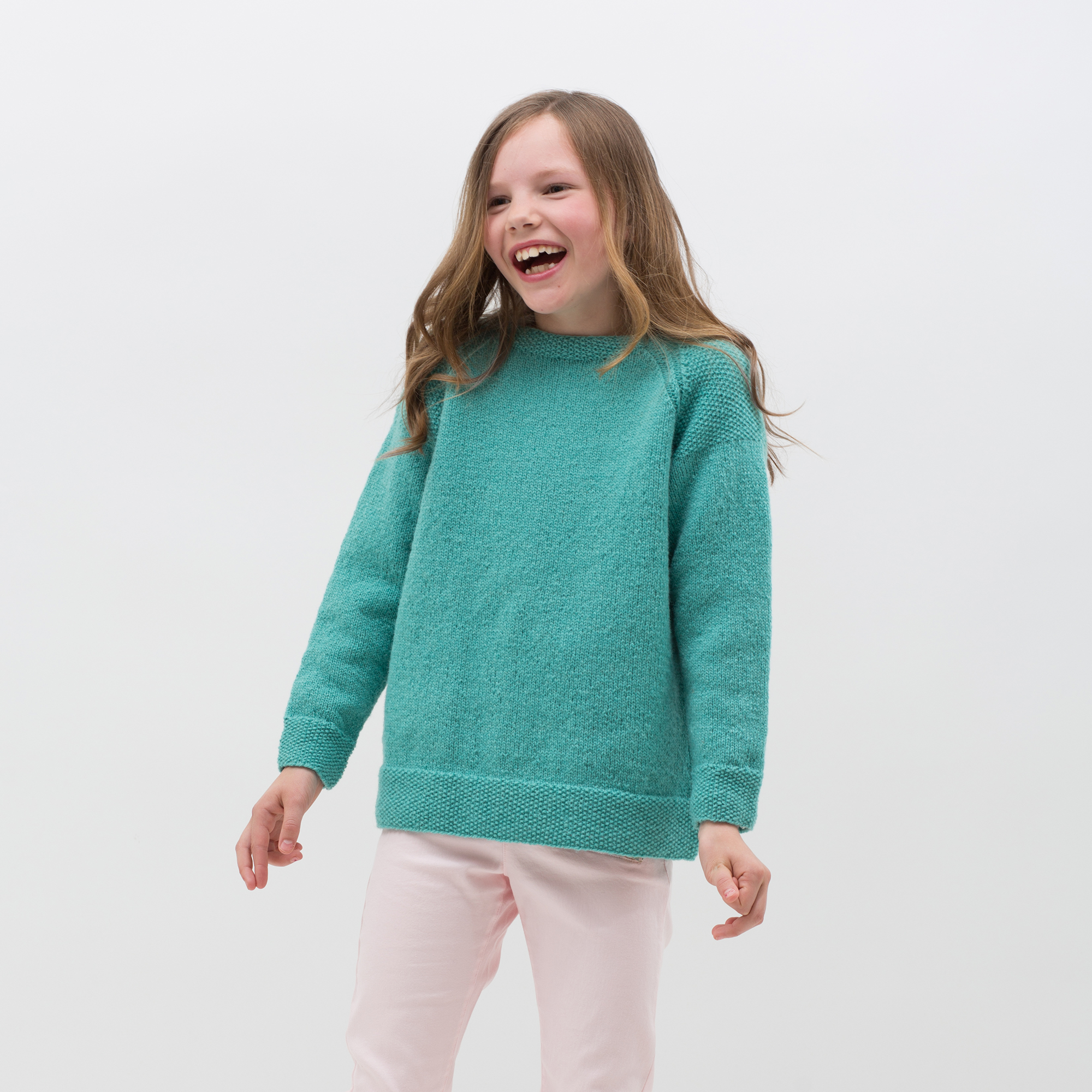 Alva genser strikkes i Ask ullgarn. Garnpakken inneholder oppskrift og garn nok til den aktuelle størrelsen.