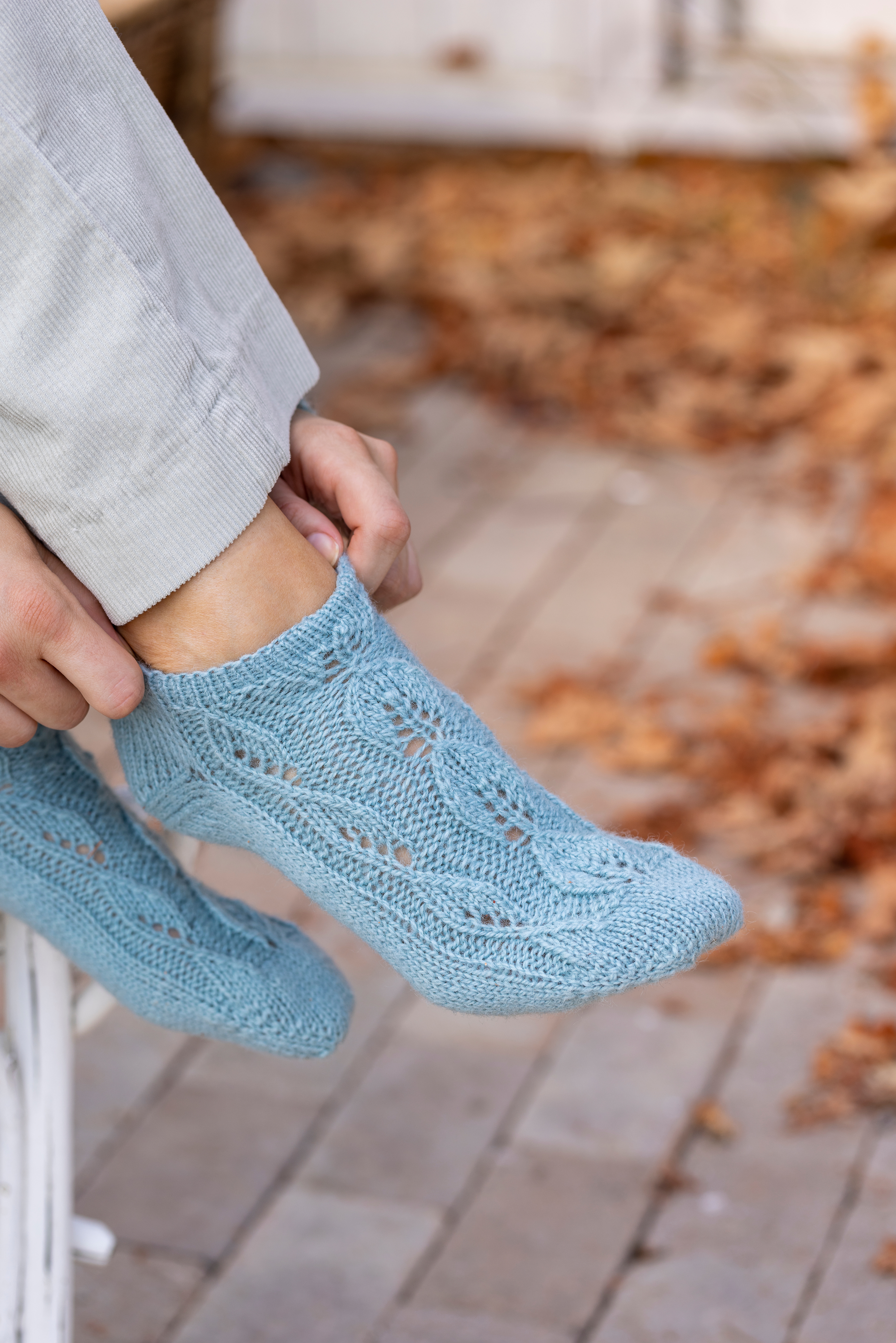 Anya ankelsokker strikkes i Fjord sokkegarn 2. Garnpakken inneholder oppskrift og garn nok til største størrelse.