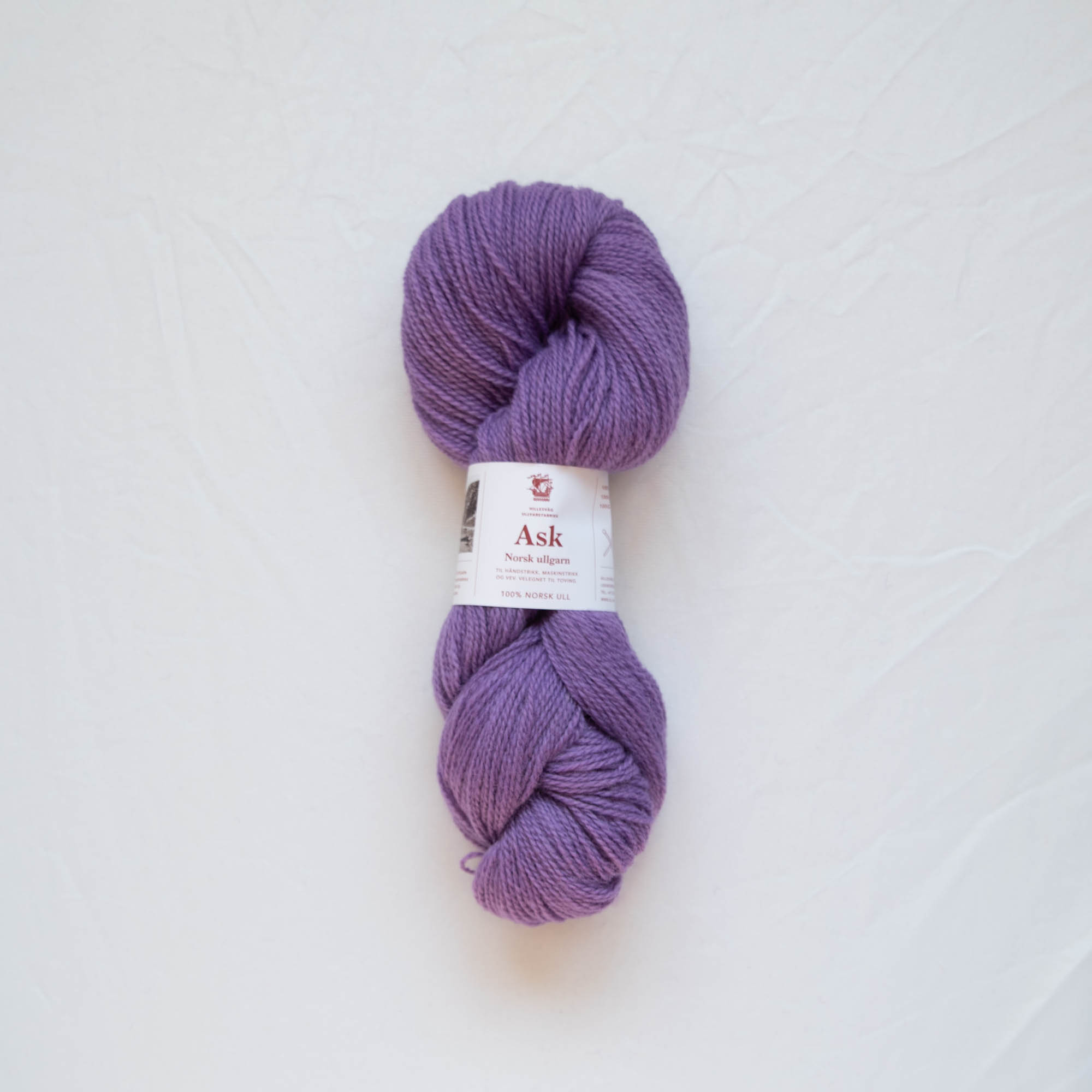 Ask ullgarn er et 2-trådet kardegarn spunnet av norsk ull. Denne fargen er farget med GOTS-godkjent fargestoff som er tillatt i økologisk produksjon av garn og tekstiler.