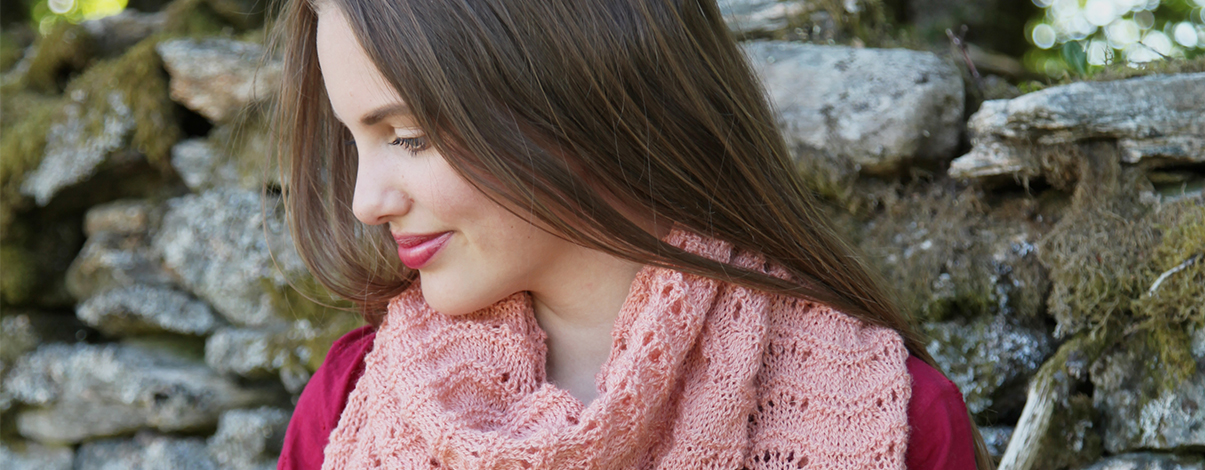 Athene sjal strikkes i Huldra kamgarn.