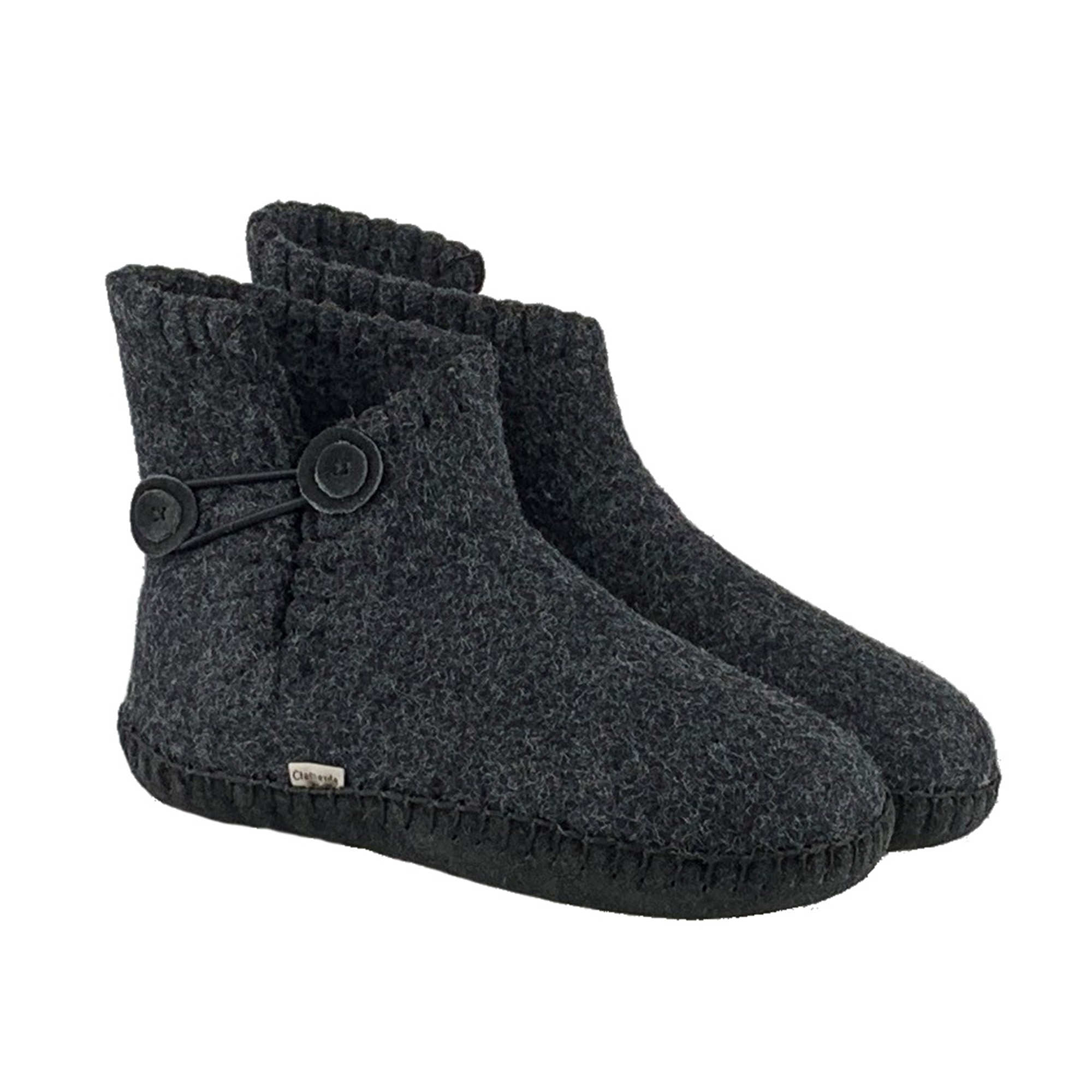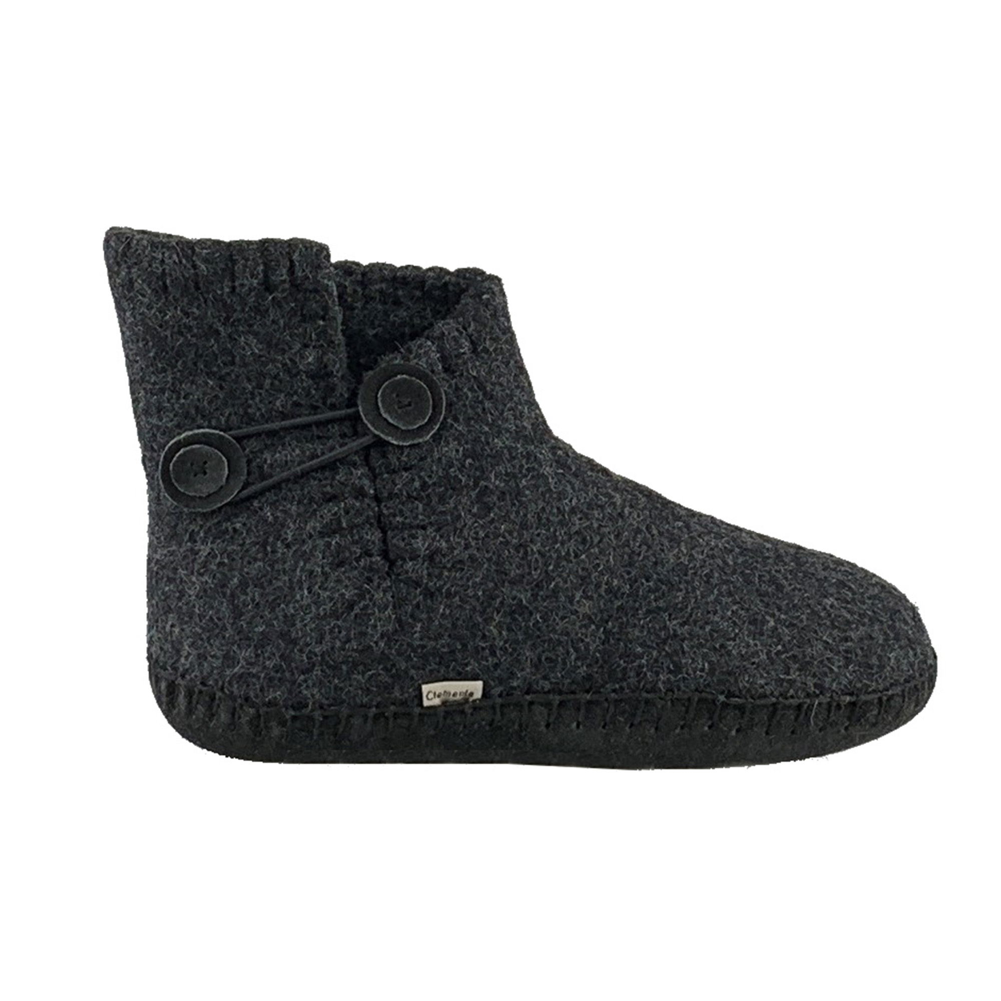 Filttøfler fra Clemente er håndfiltet av norsk høstull fra Hillesvåg Ullvarefabrikk og har såler av semsket skinn.