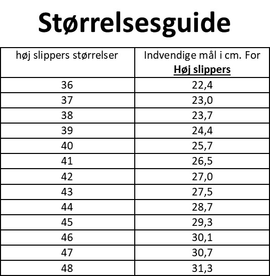 Tøflene er små i størrelsen og vi anbefaler å se på størrelsesoversikten og gå opp en størrelse fra den du vanligvis bruker.