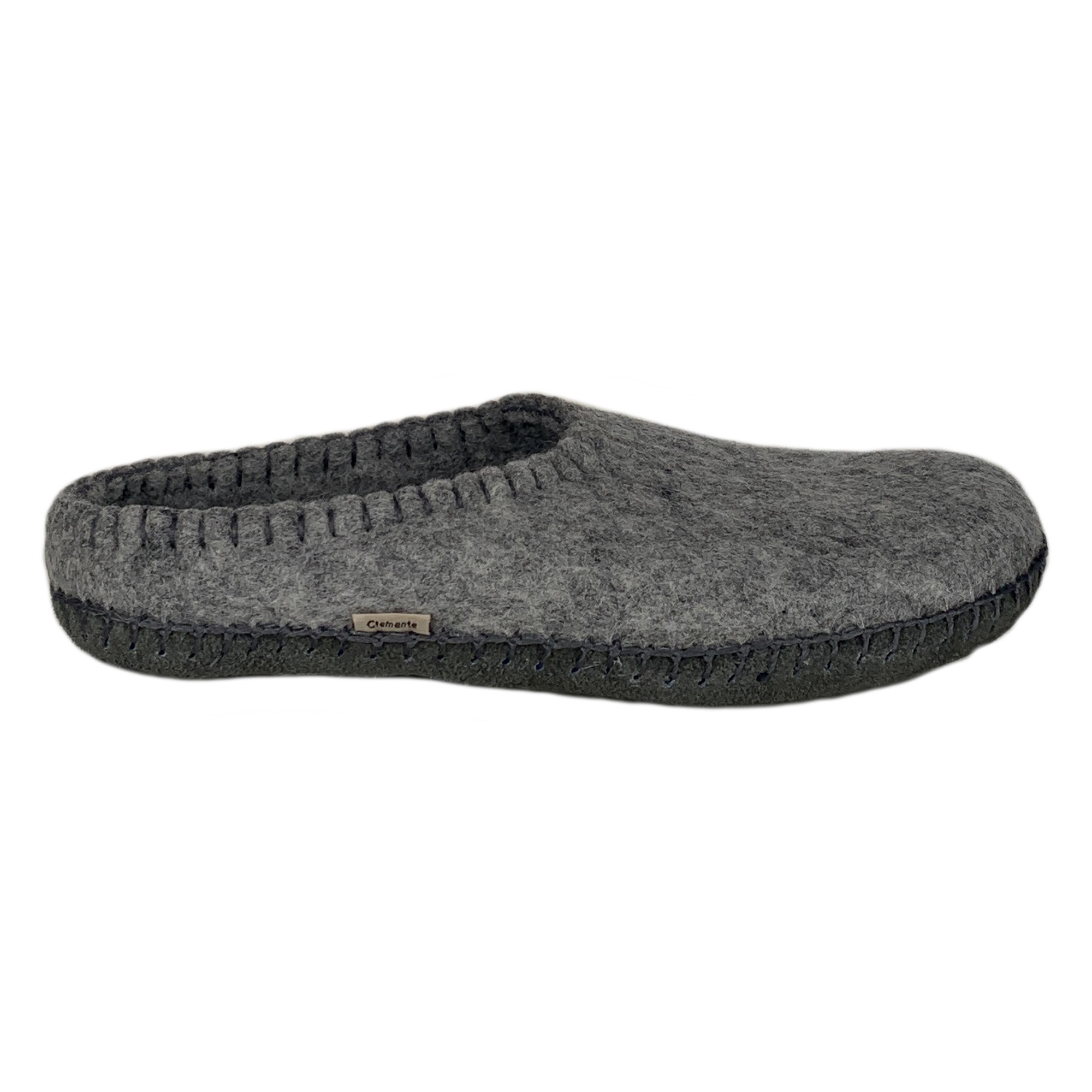Filttøfler fra Clemente er håndfiltet av norsk høstull fra Hillesvåg Ullvarefabrikk og har såler av semsket skinn.