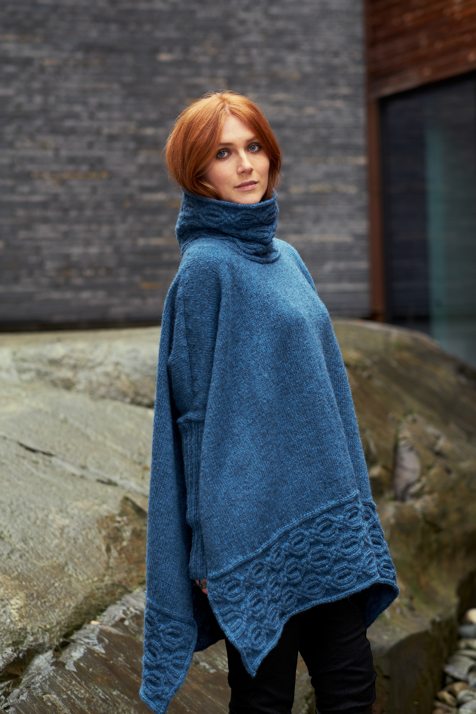 One size oversized poncho med ermer i Tinde pelsullgarn.