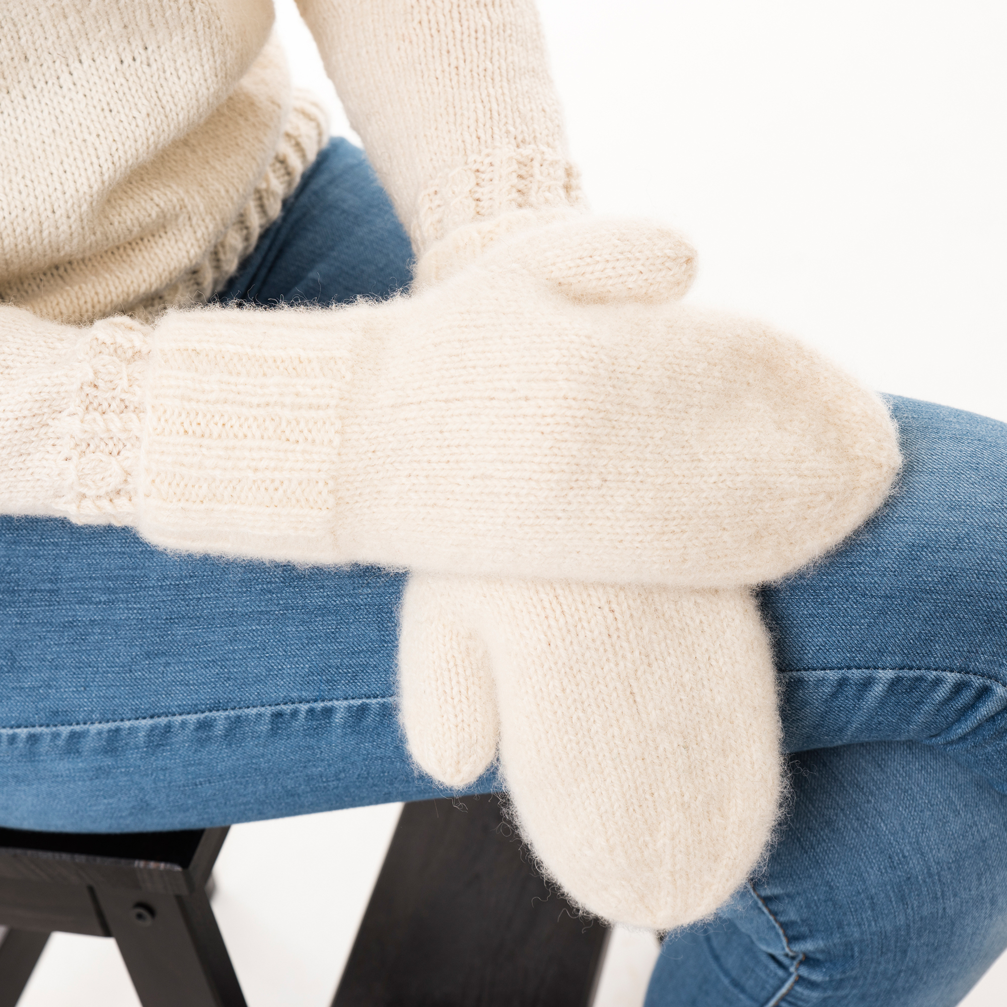 Votten vises her i fargen 326057 ubleket hvit. Om du ønsker å strikke i andre farger, kan du se alle de flotte fargene i Embla her