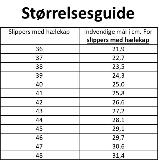 Tøflene er små i størrelsen og vi anbefaler å se på størrelsesoversikten og gå opp en størrelse fra den du vanligvis bruker.