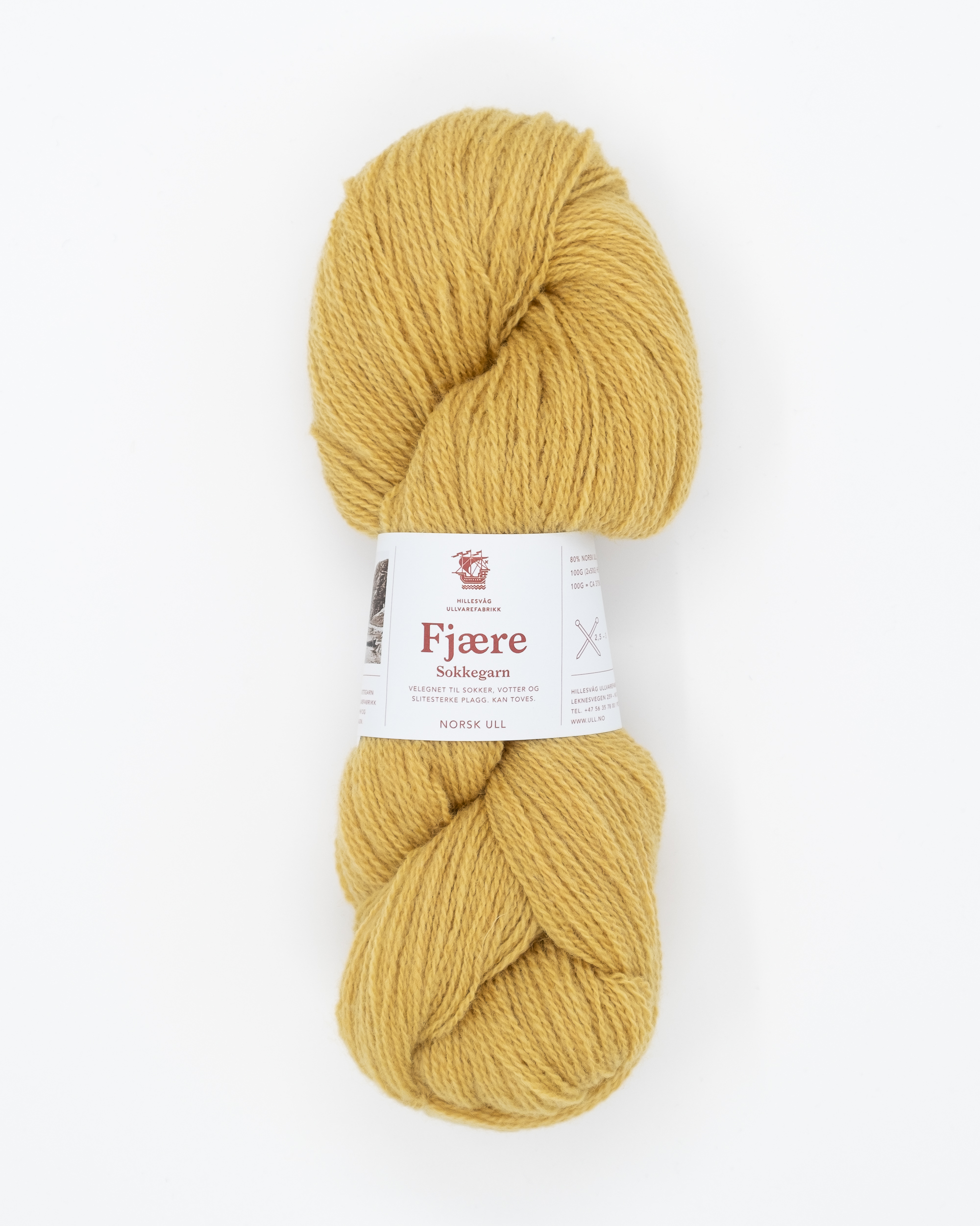 Det er spunnet av 80% norsk ull og 20% nylon. Fjære sokkegarn kommer i hesper à 100g.
