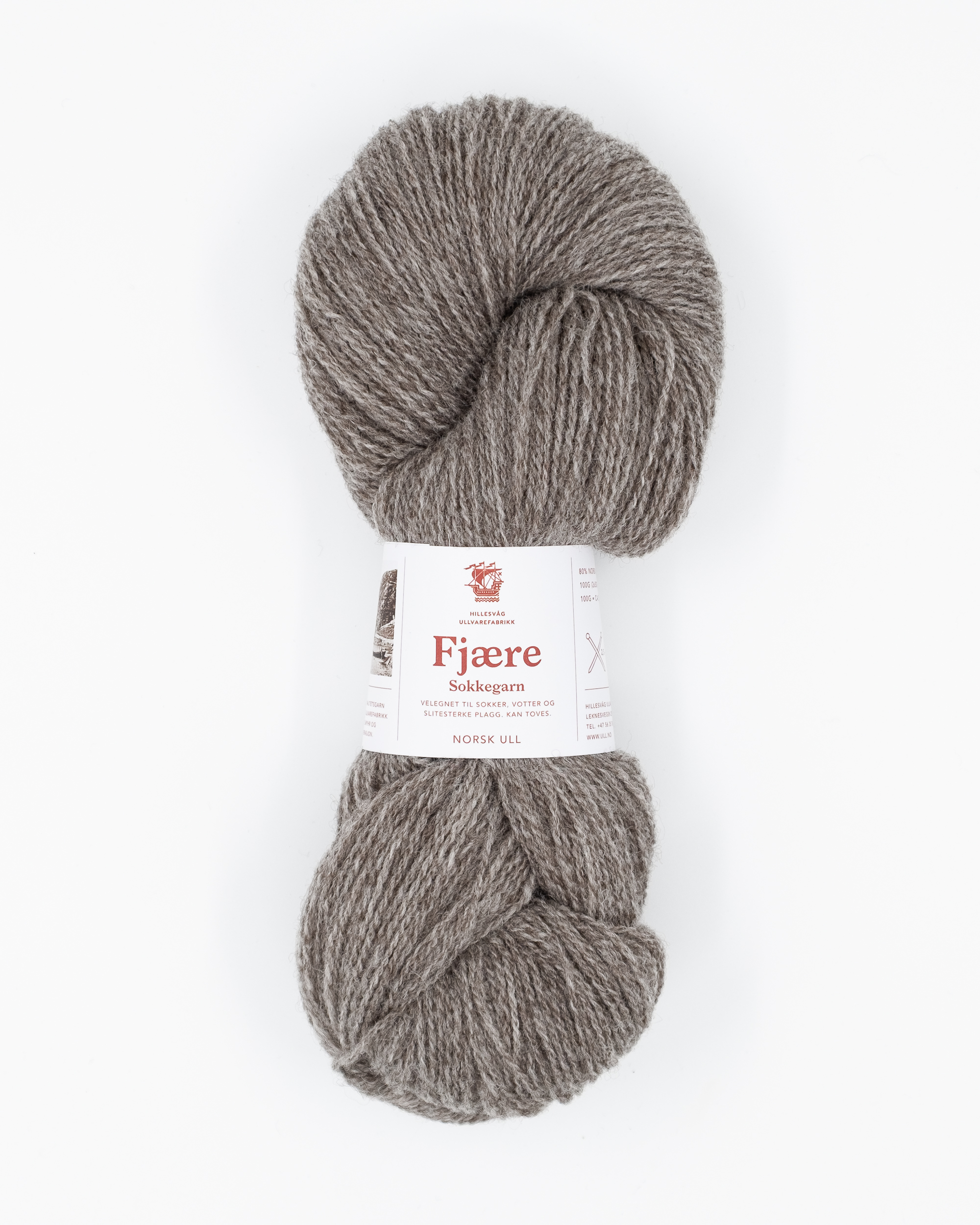 Det er spunnet av 80% norsk ull og 20% nylon. Fjære sokkegarn kommer i hesper à 100g.