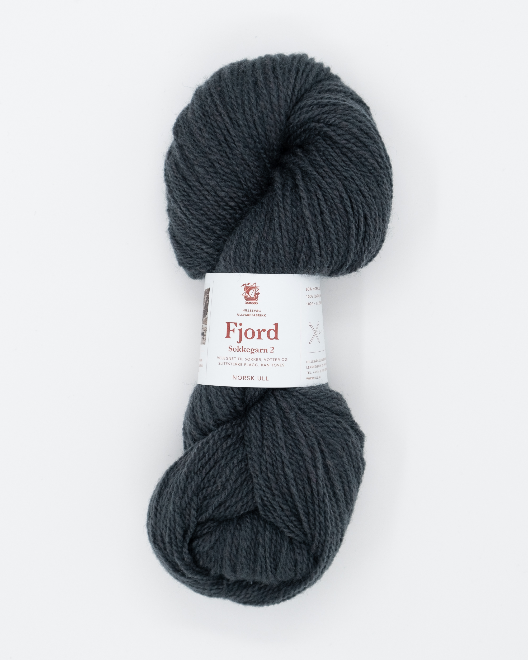 • Fjord sokkegarn 2 er et meget godt garn til slitesterke plagg. Det er spunnet av 80% norsk ull og 20% nylon. Fjord sokkegarn leveres i hesper à 100g.