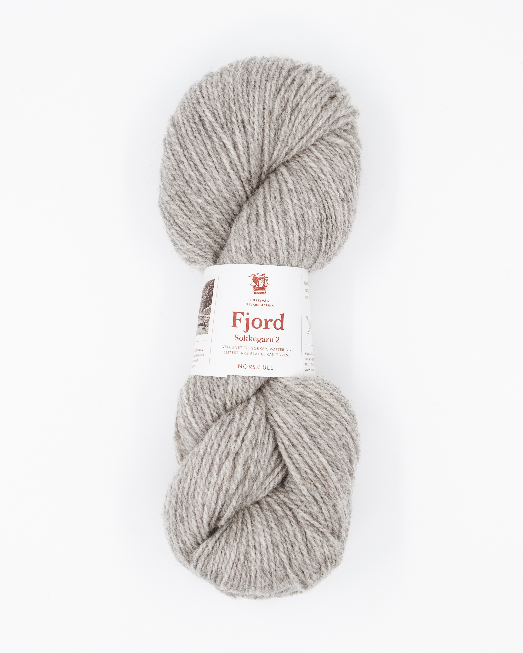 • Fjord sokkegarn 2 er et meget godt garn til slitesterke plagg. Det er spunnet av 80% norsk ull og 20% nylon. Fjord sokkegarn leveres i hesper à 100g.