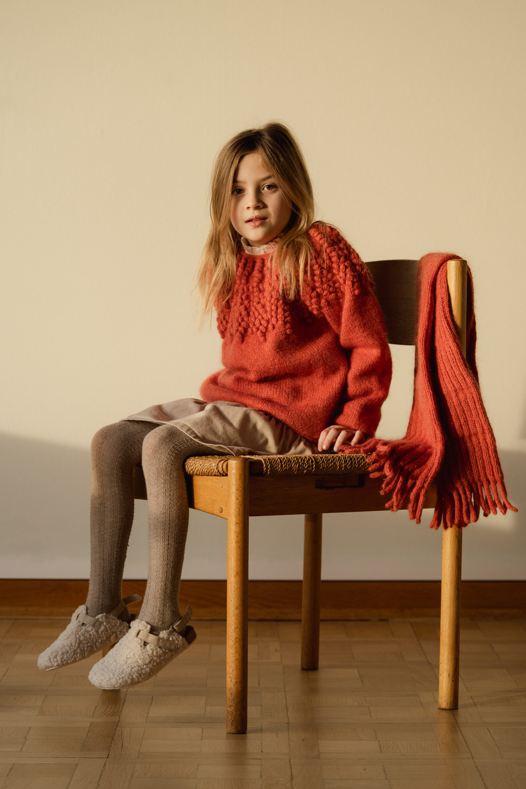 Genseren er her vist i garnkombinasjonen Vilje lamullgarn og Silk Mohair i str 7-8 år.