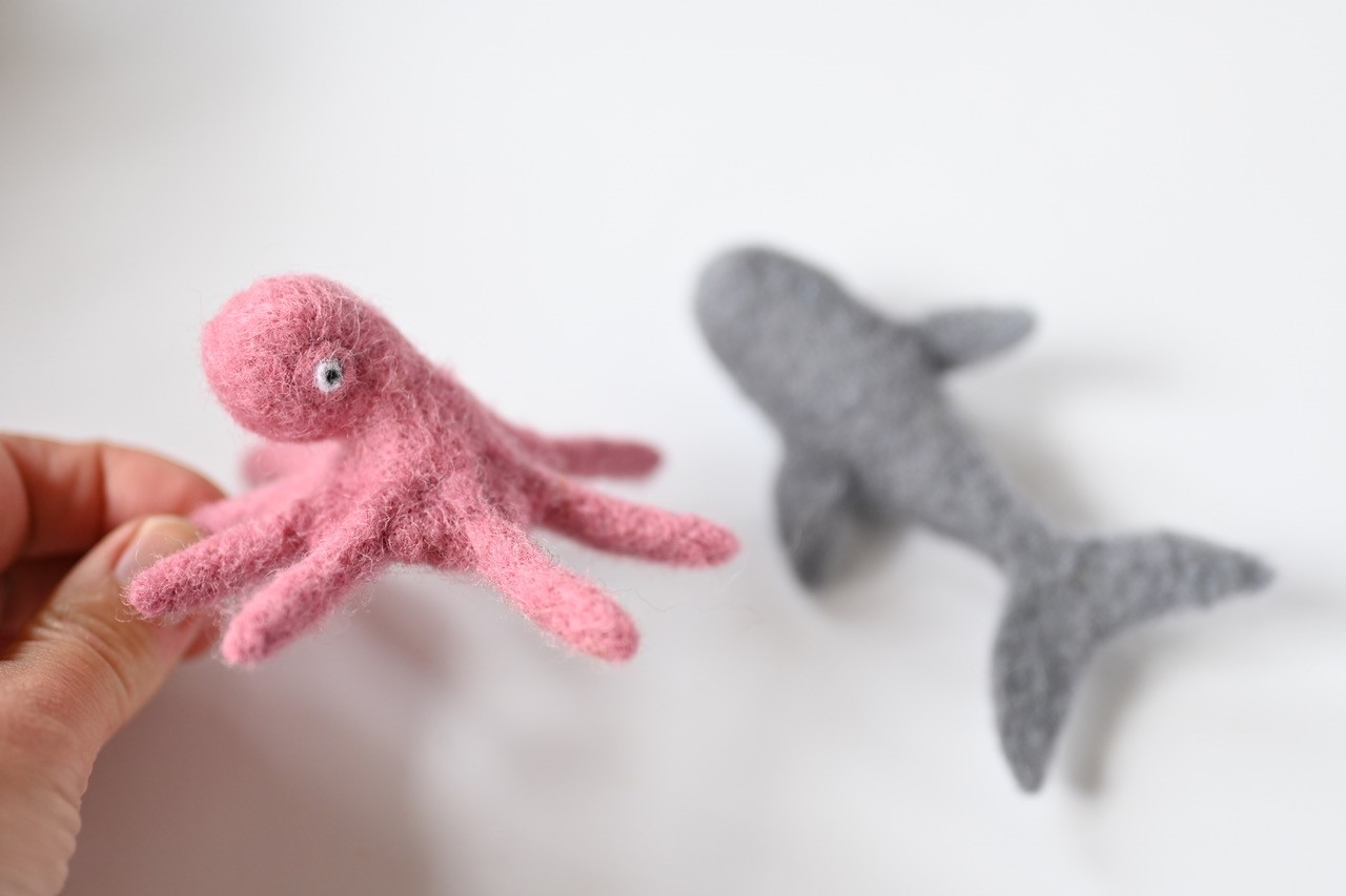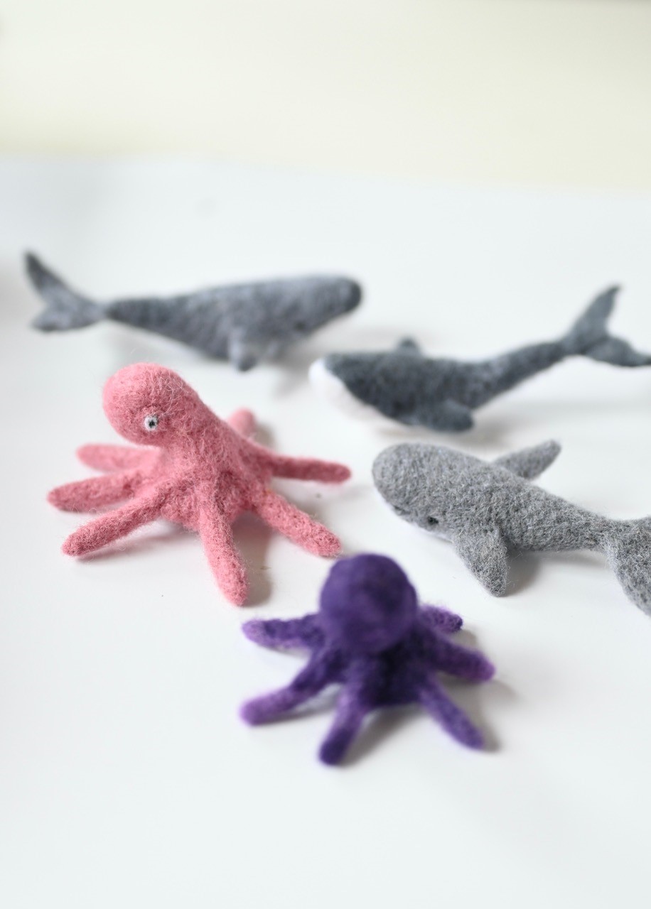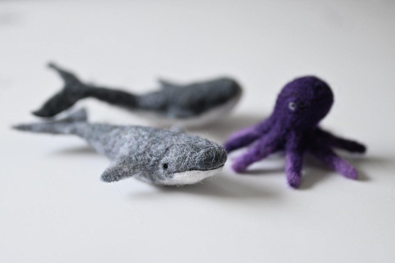 Ullpakke med det du trenger for å filte din egen hval og blekksprut.