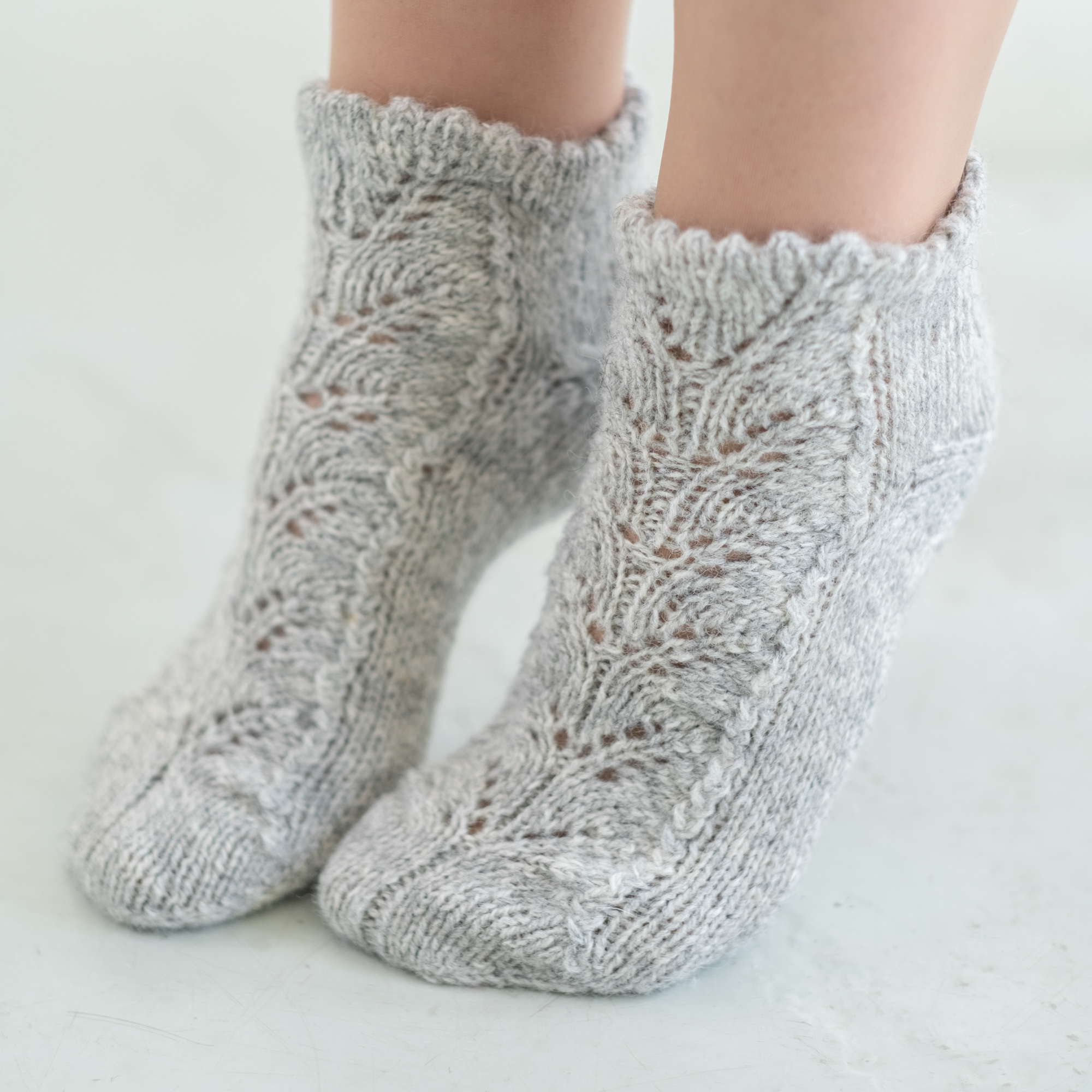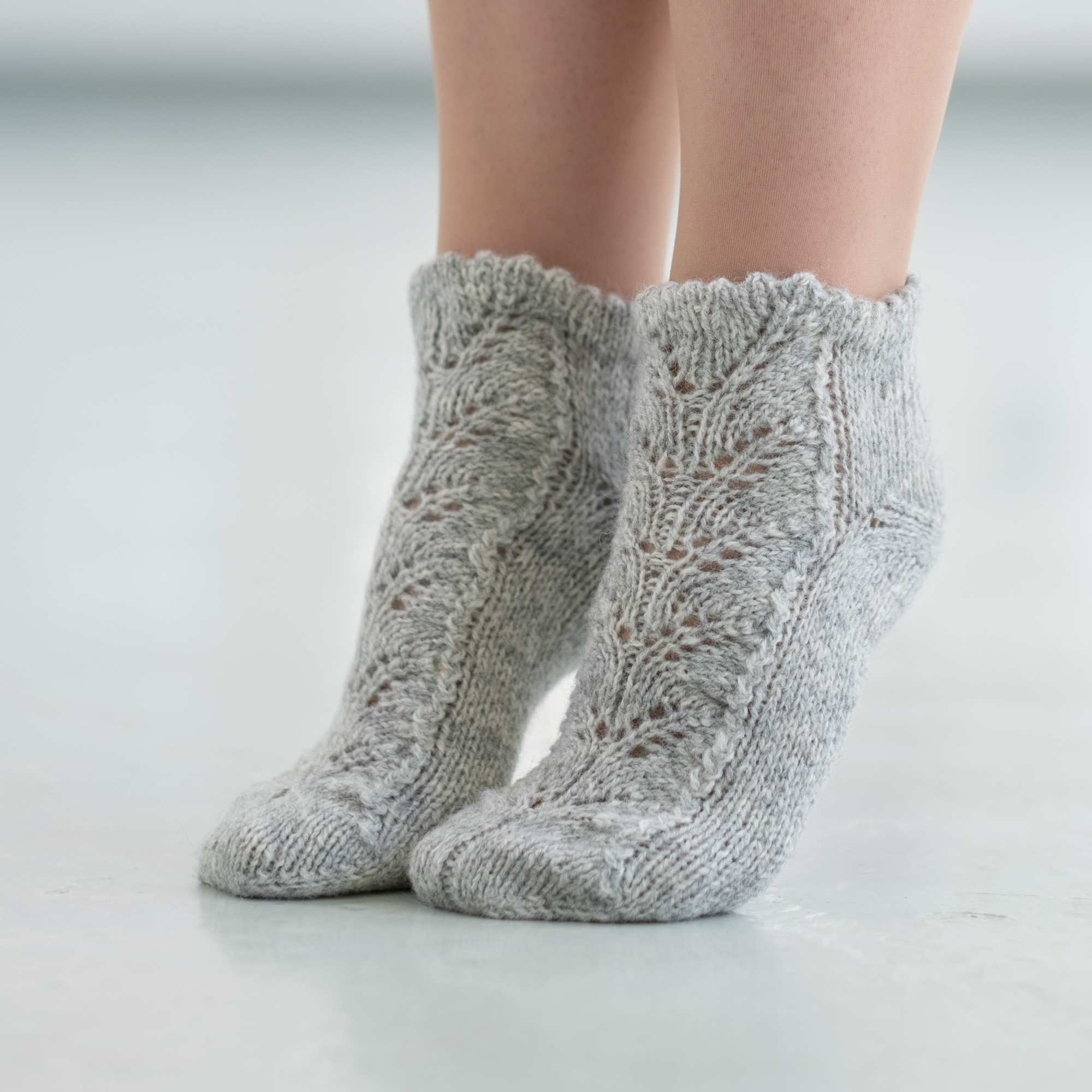 Hveteaks ankelsokker strikkes i Fjord Sokkegarn. Garnpakken inneholder oppskrift og garn nok til den største størrelsen.