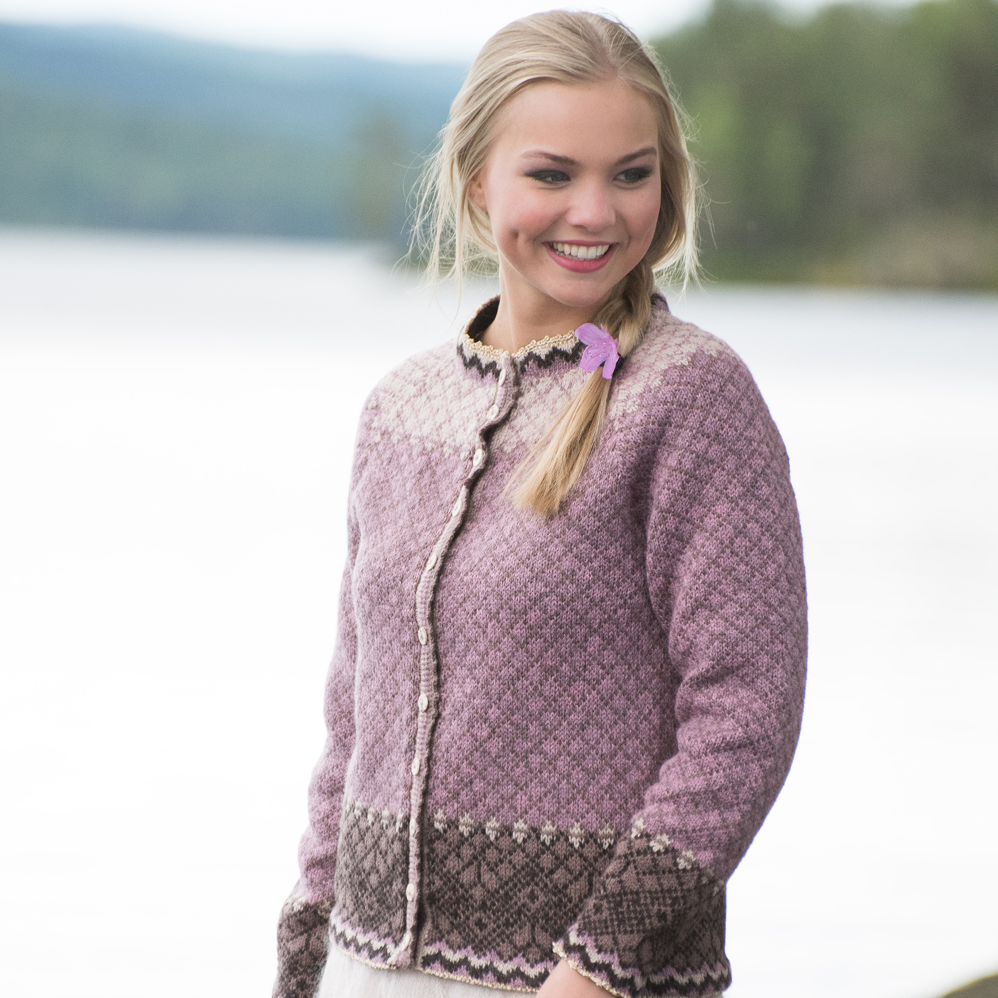 Garnpakken inneholder oppskrift og garn til den aktuelle størrelsen. Jakken strikkes i Ask og Concorde.