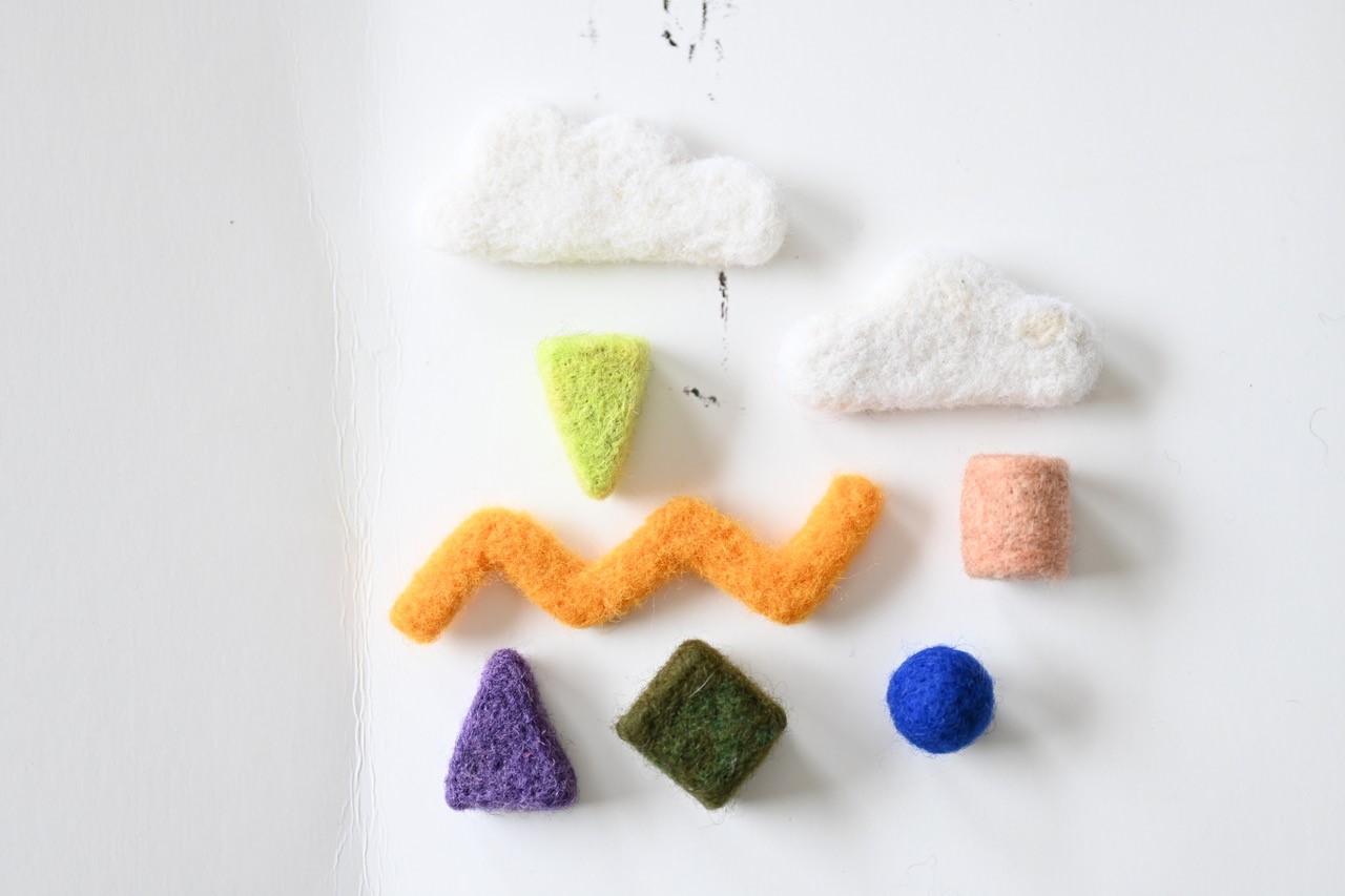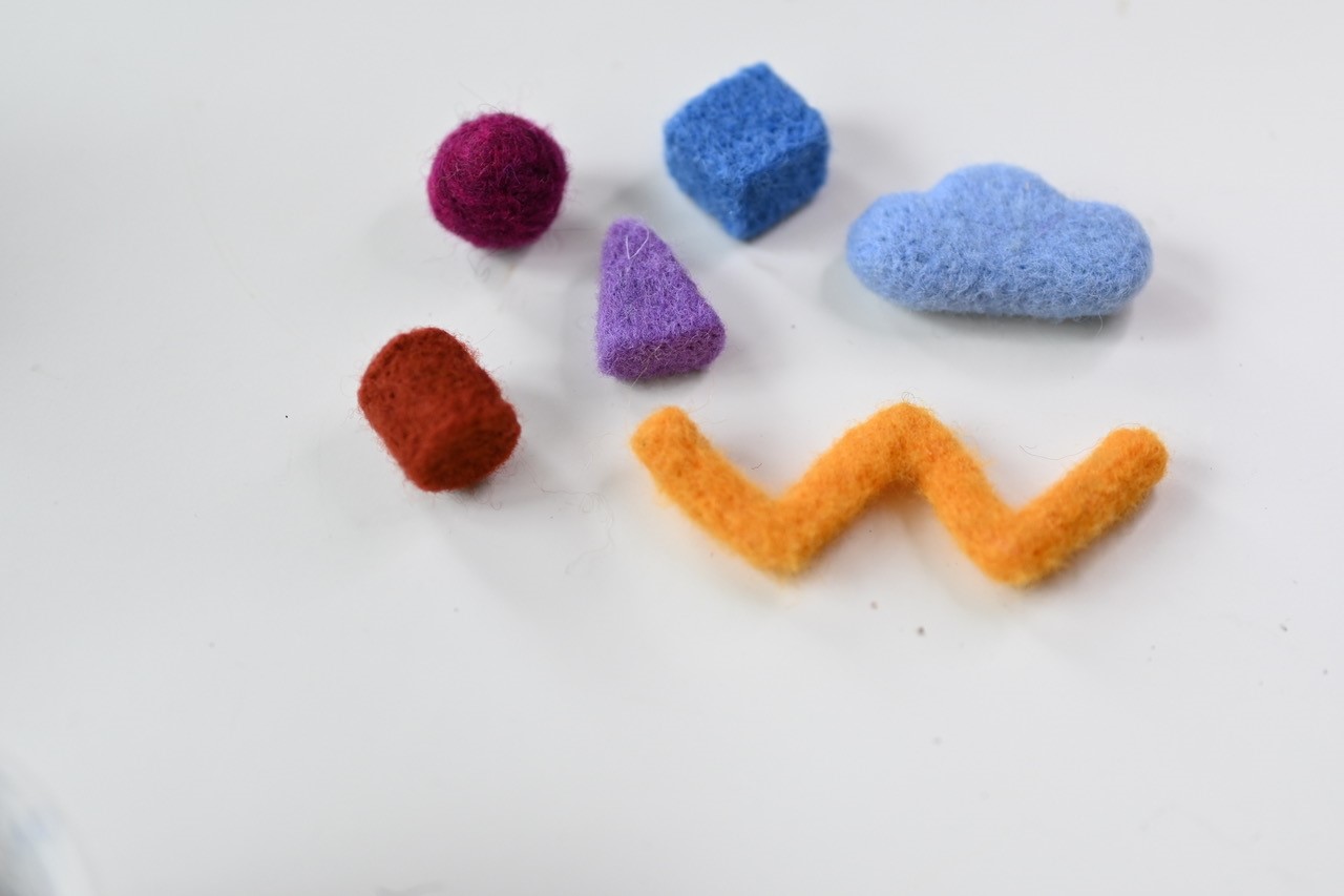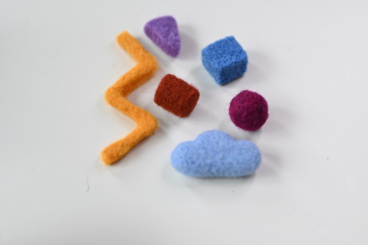 Ullpakke med det du trenger for å filte dine egne geometriske figurer. Pakken er super for nybegynnere som vil prøve seg fram med å nålefilte ulike former.