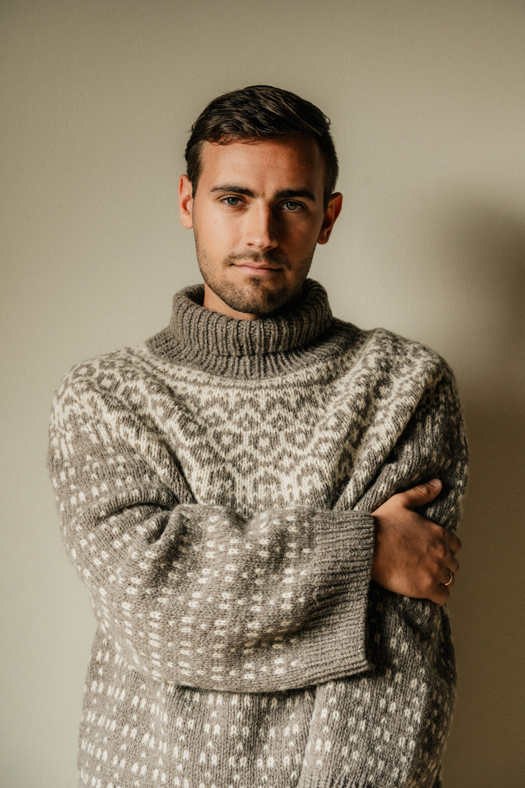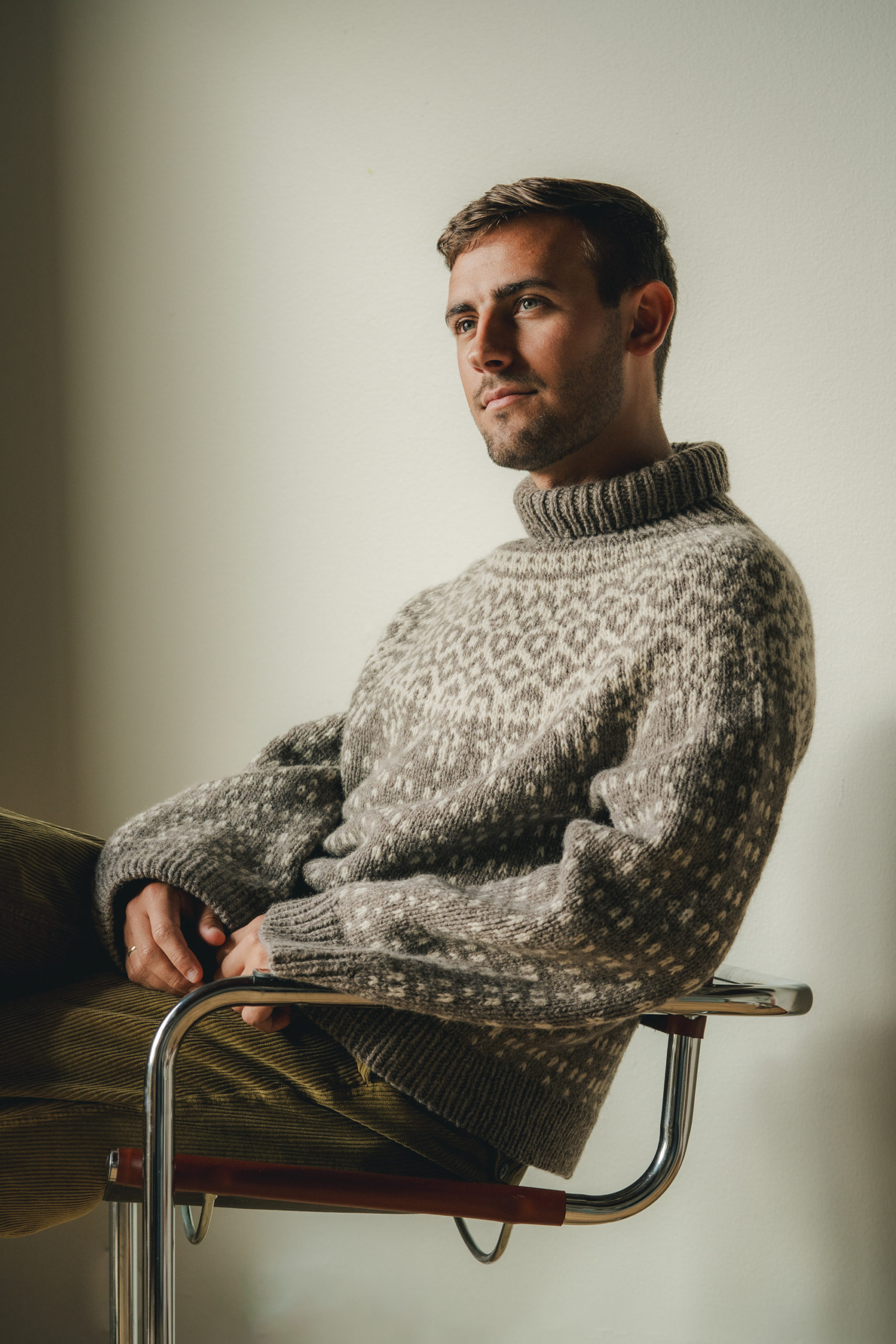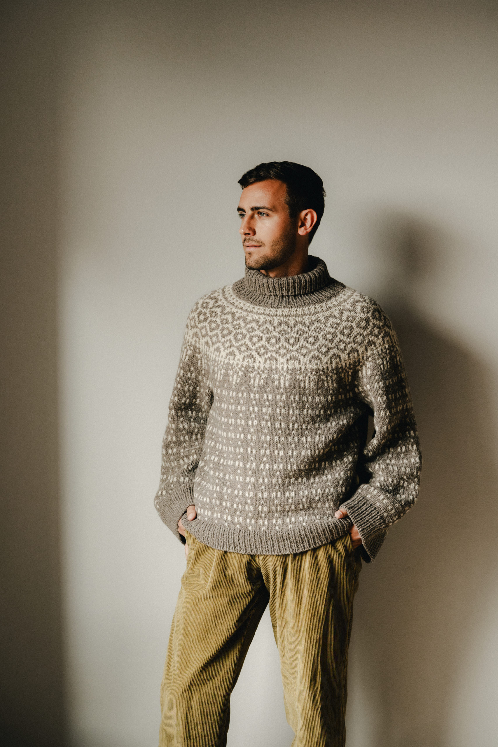 This sweater is designed to be unisex, and the pattern will guide you on how to make it in either a feminine or maskuline version, depending on your personal preferences. Please note, that the lengths and yarn amounts varies between the 2 versions, whilst the general sizing, which is determined by your own actual bust circumference, does not.