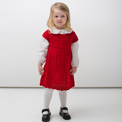 Tunikaen strikkes nedenfra og opp og har et rundt bærestykke.