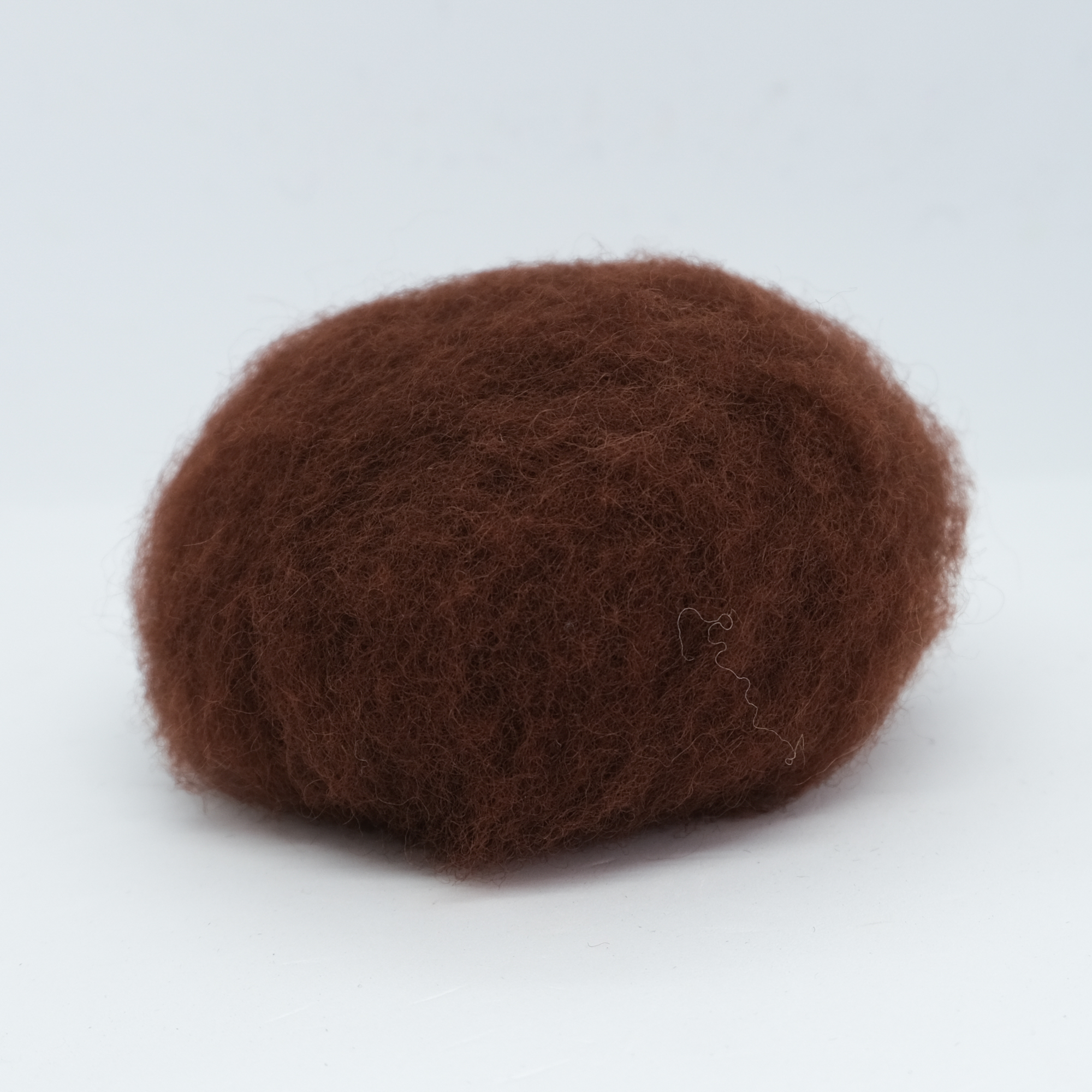 Carded, dyed C1 – 49 colors (incl. 3 grey mixture colors). Norwegian long-wool, summer wool. Colorfast. Very suitable for felt slippers/shoes, hats, figures and many other products of wool. Produced in batts