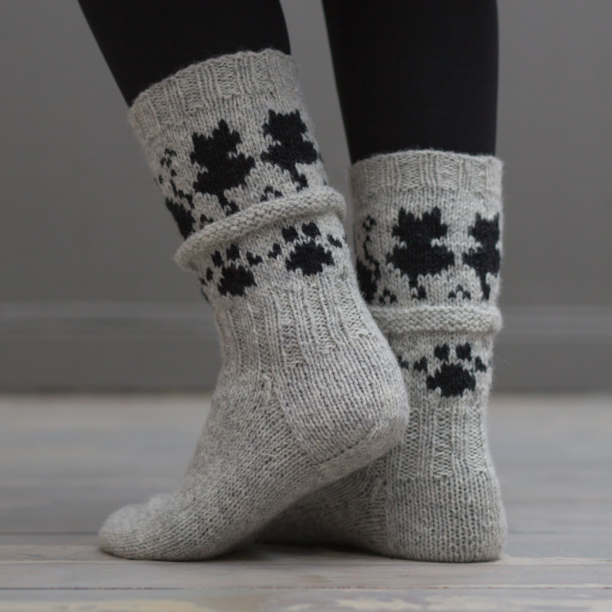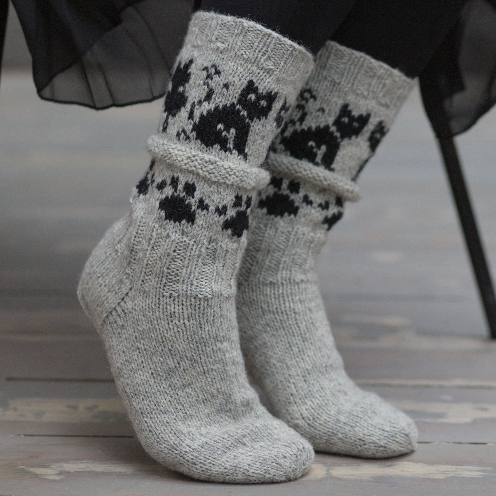 Yarn kit contains pattern in English and enough yarn for 1 pair of socks in largest size.