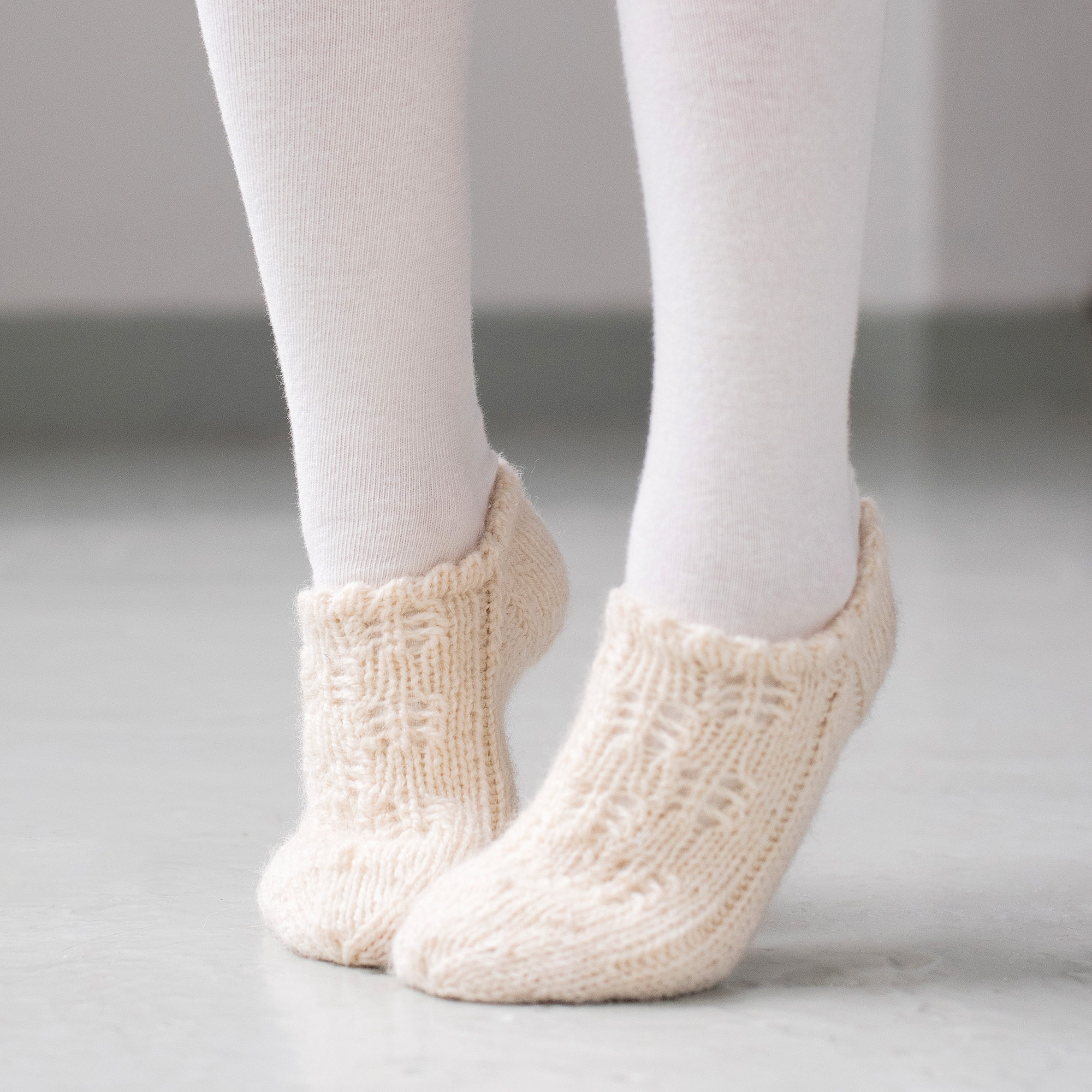Lett på tå – strikkes i Fjord sokkegarn. Garnpakken inneholder oppskrift og garn nok til største størrelse.