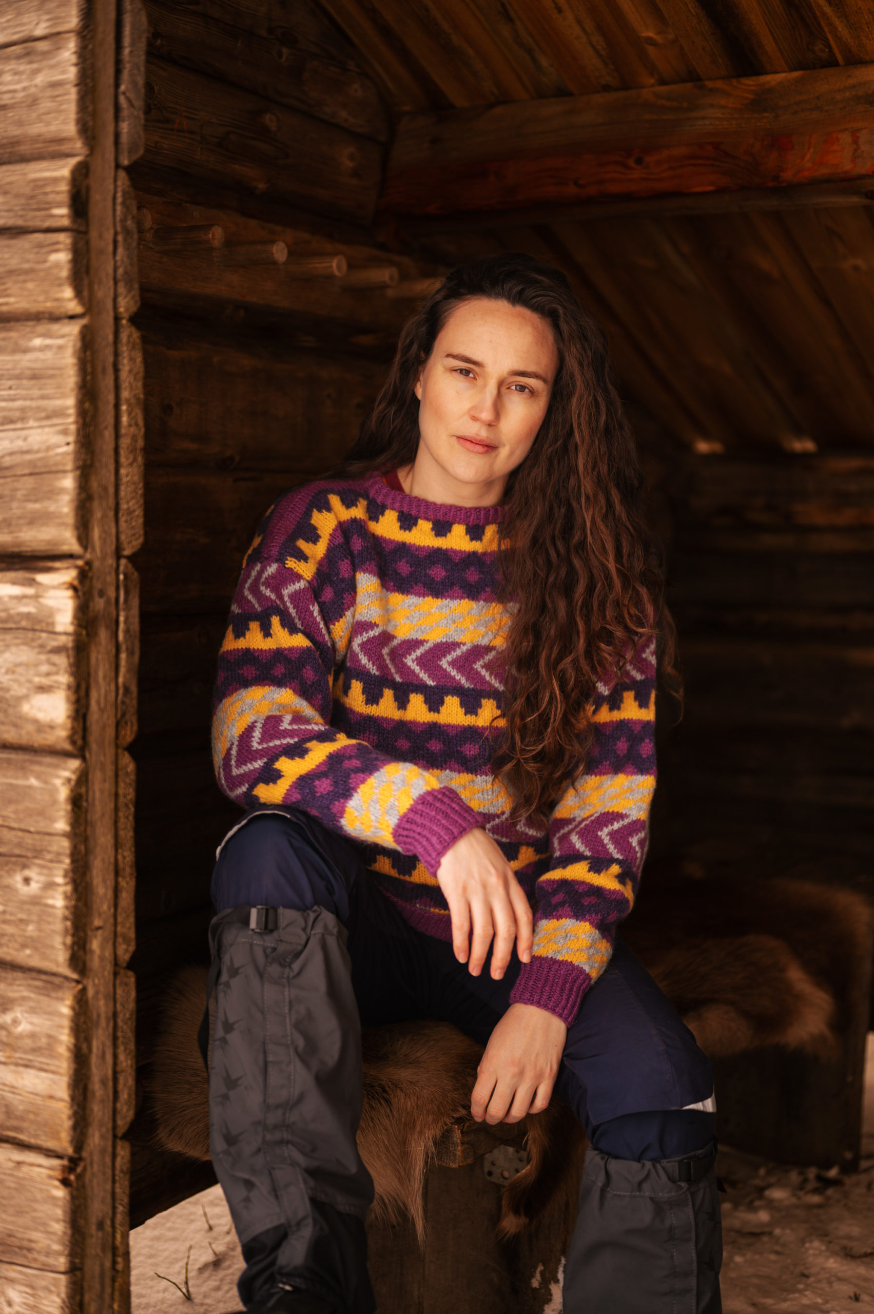 Denne genseren er oversized og har en anbefalt bevegelsesvidde på ca 20 cm. Merk at skulderen faller et stykke ned på ermet og er med på å danne lengden på ermet. Du kan selvsagt strikke den mer tettsittende eller løsere etter eget ønske.