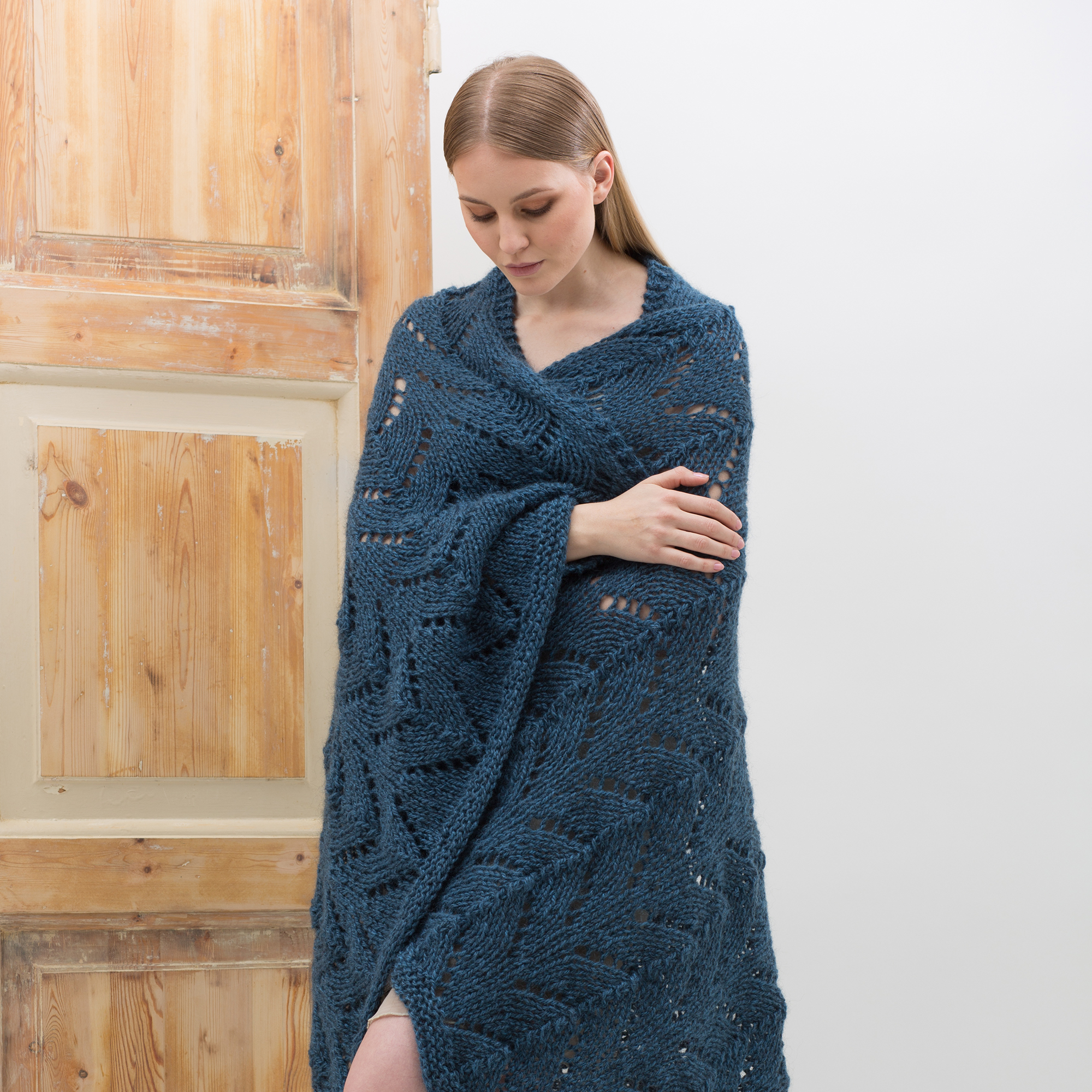 Garnforbruk: Blåne pelsullgarn, 100% norsk ull. 100 g = ca. 114 m. Mellomblå 2135: 700 – 900 g Pinneforslag: Rundpinne 80 cm 9 mm