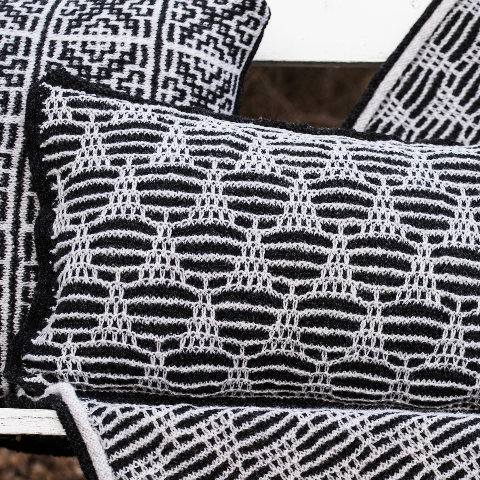Pute i mosaikkstrikk: 51 x 51 cm (bruk fyllpute 55 x 55 cm)