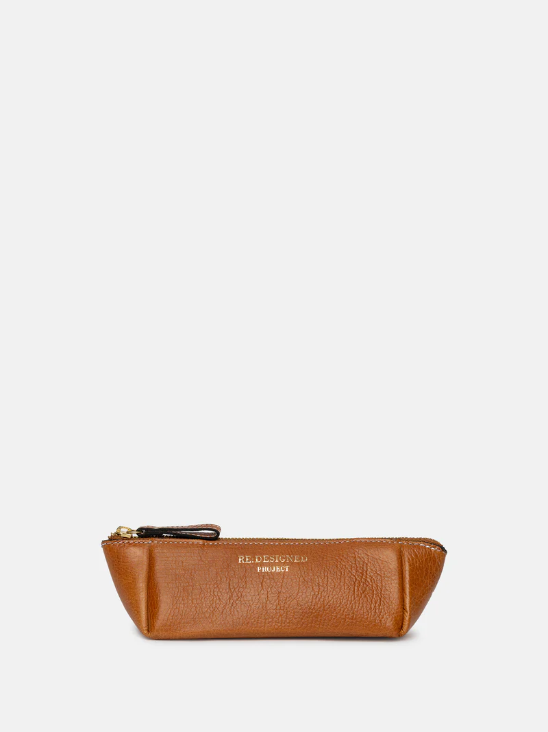 Project 11 er et lite trekantet skinnetui for strikkepinner eller heklenåler, med en gyllen YKK-glidelås.