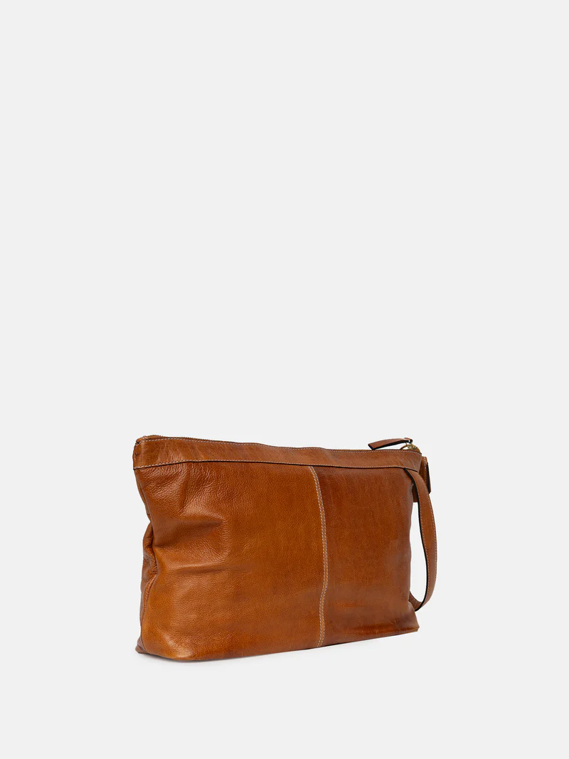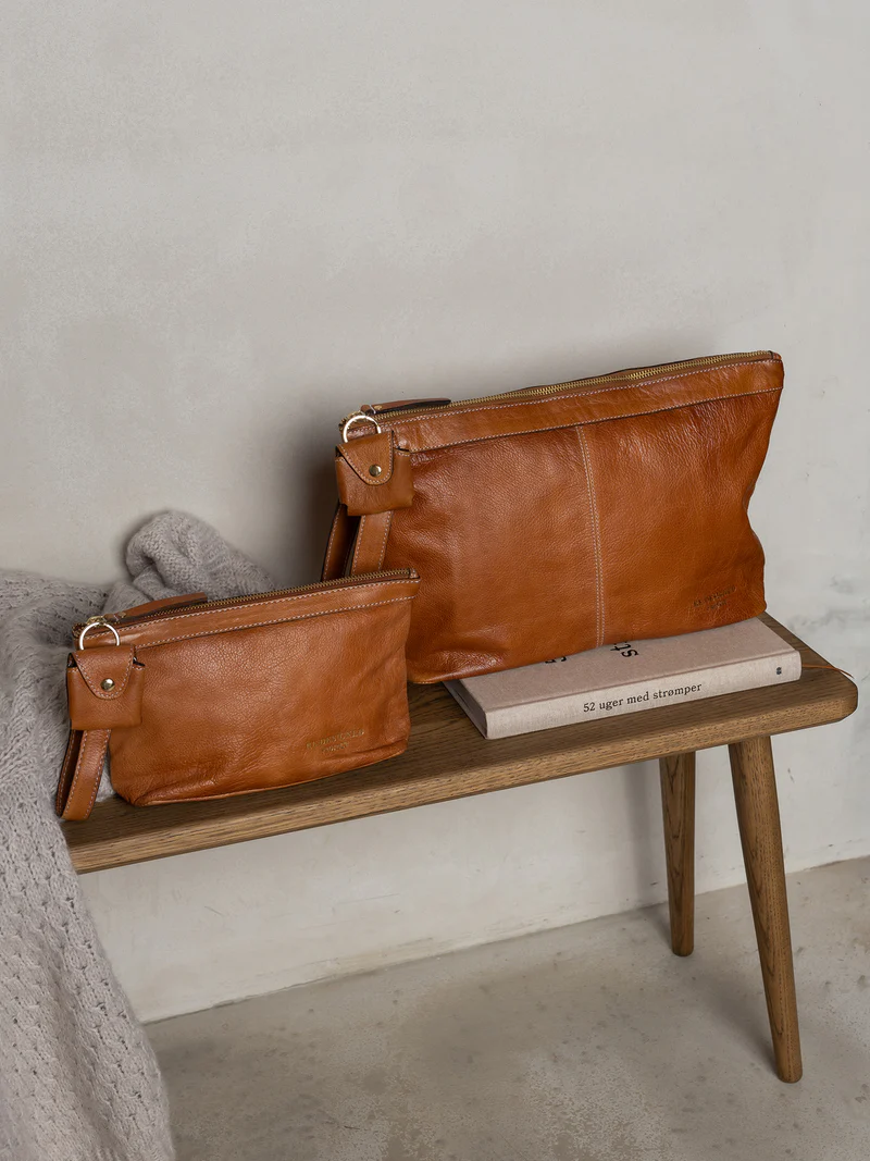 Laget i Urban-lær – et valset kuskinn der hver veske farges før overflaten ferdigstilles, noe som bevarer den originale kornstrukturen i rålæret. Etter farging påføres et lett vokslag som gir en glatt og myk finish med unike egenskaper.