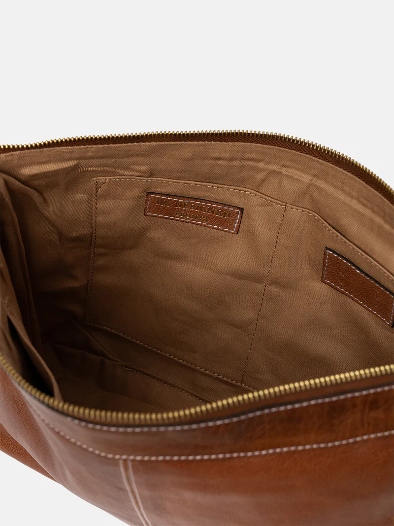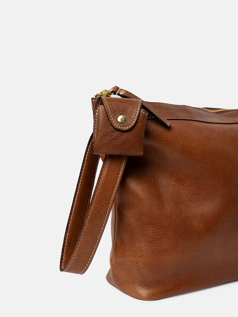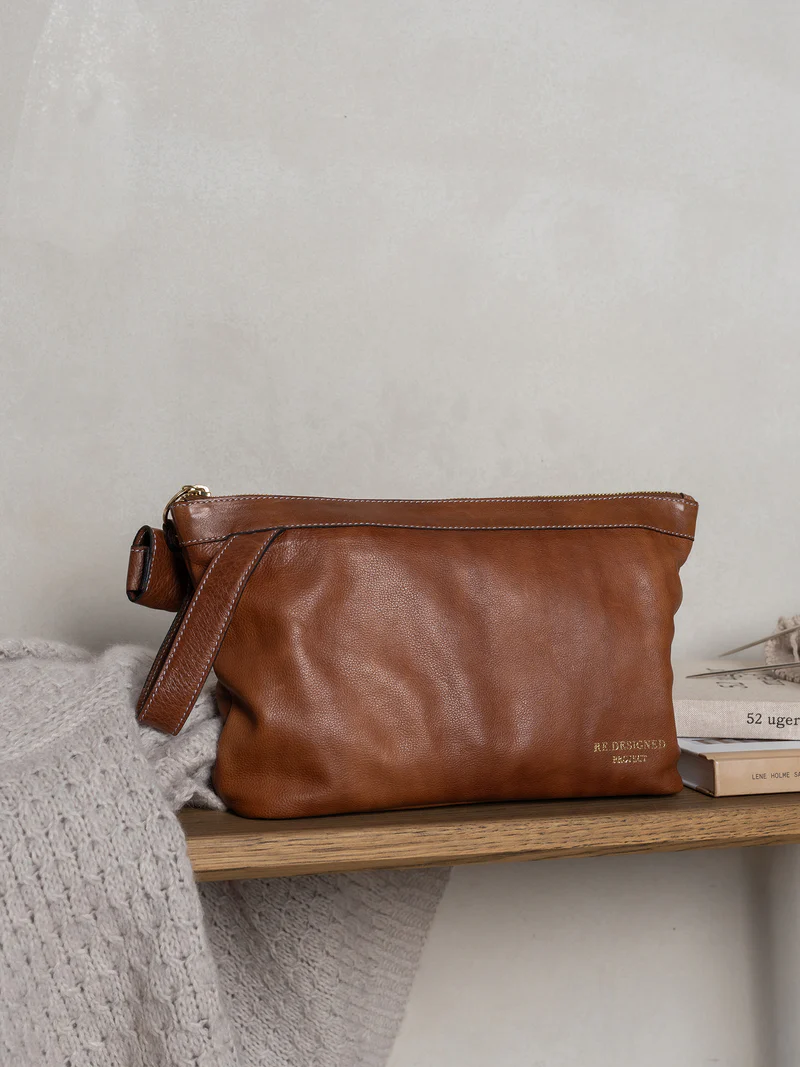 Laget i Urban-lær – et valset kuskinn der hver veske farges før overflaten ferdigstilles, noe som bevarer den originale kornstrukturen i rålæret. Etter farging påføres et lett vokslag som gir en glatt og myk finish med unike egenskaper.
