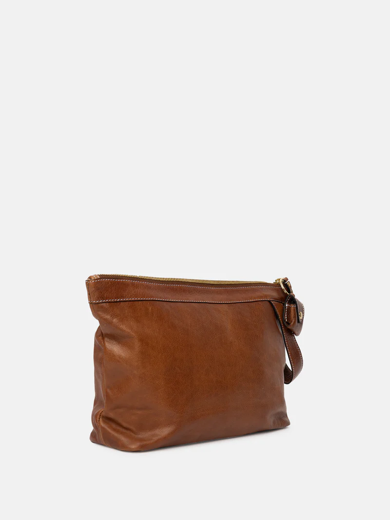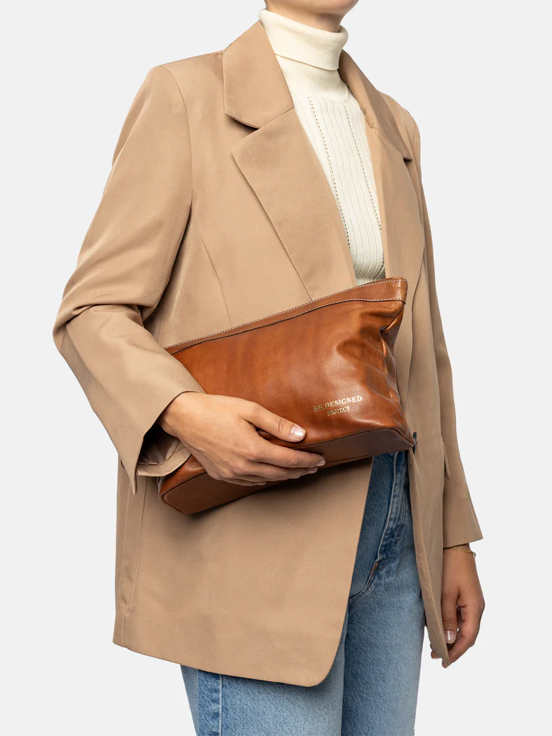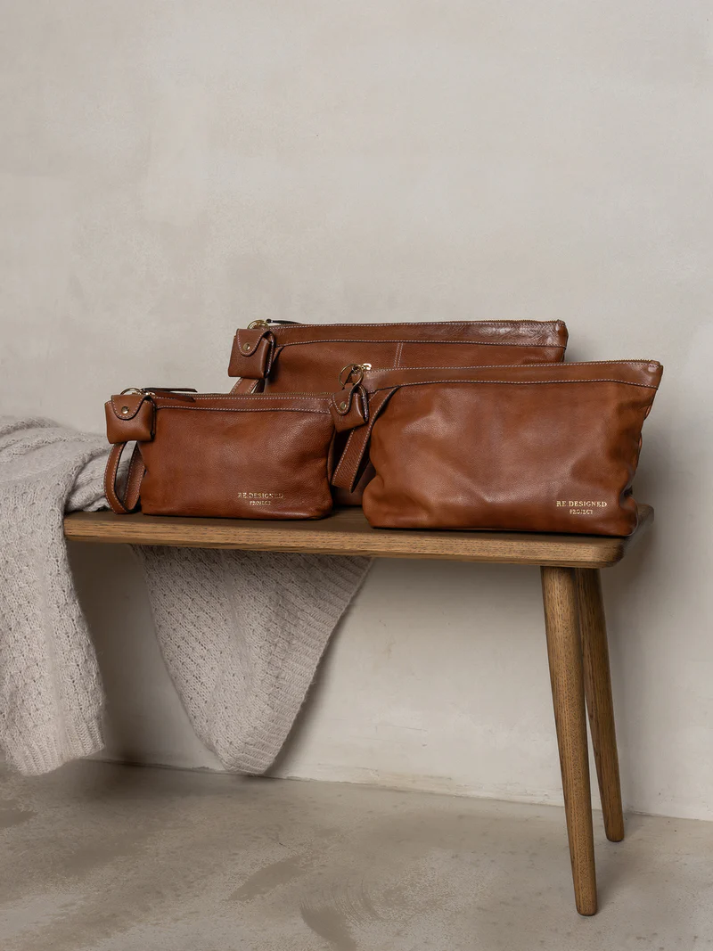 Laget i Urban-lær – et valset kuskinn der hver veske farges før overflaten ferdigstilles, noe som bevarer den originale kornstrukturen i rålæret. Etter farging påføres et lett vokslag som gir en glatt og myk finish med unike egenskaper.