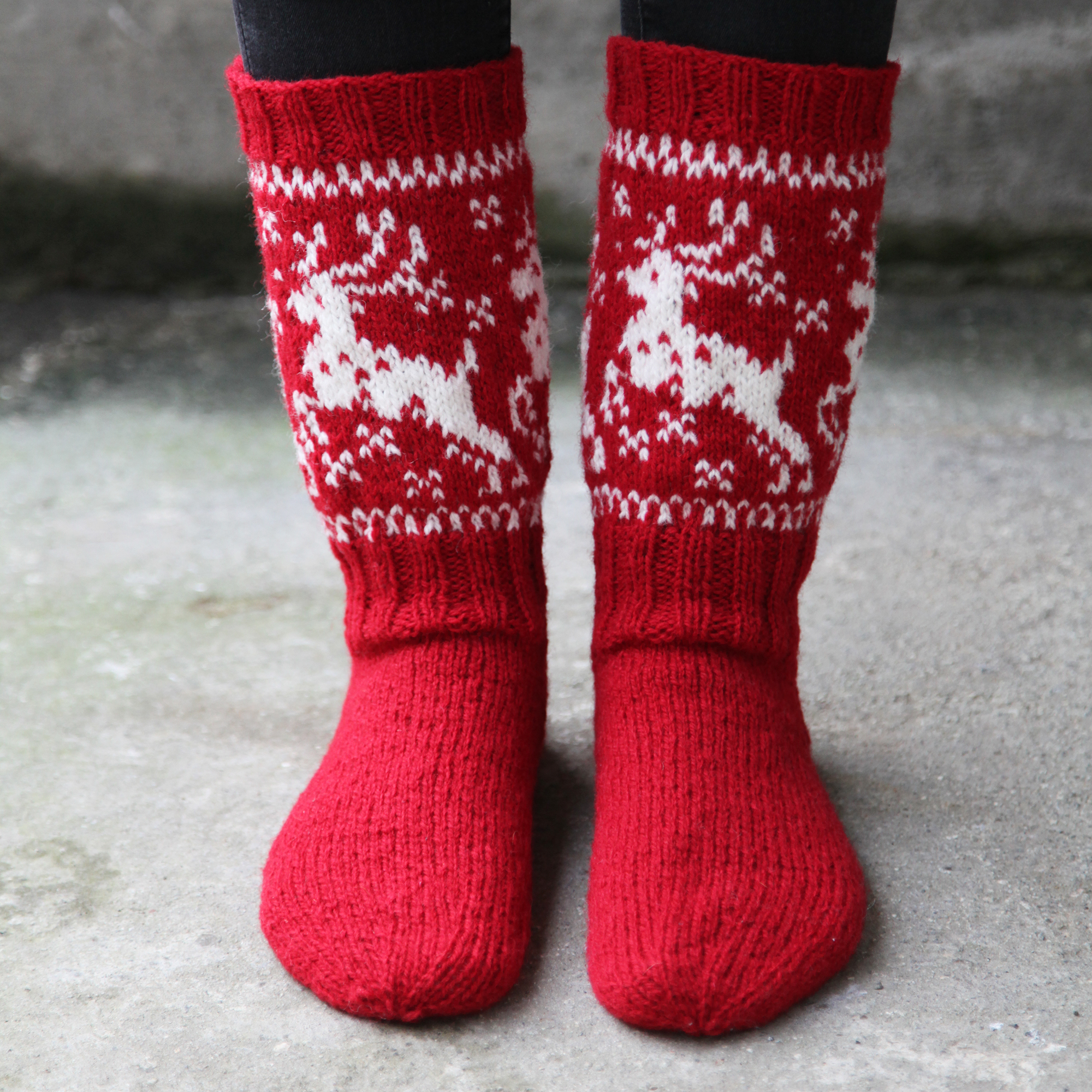 Yarn kit contains pattern in English and enough yarn to knit 1 pair of socks in largest size.