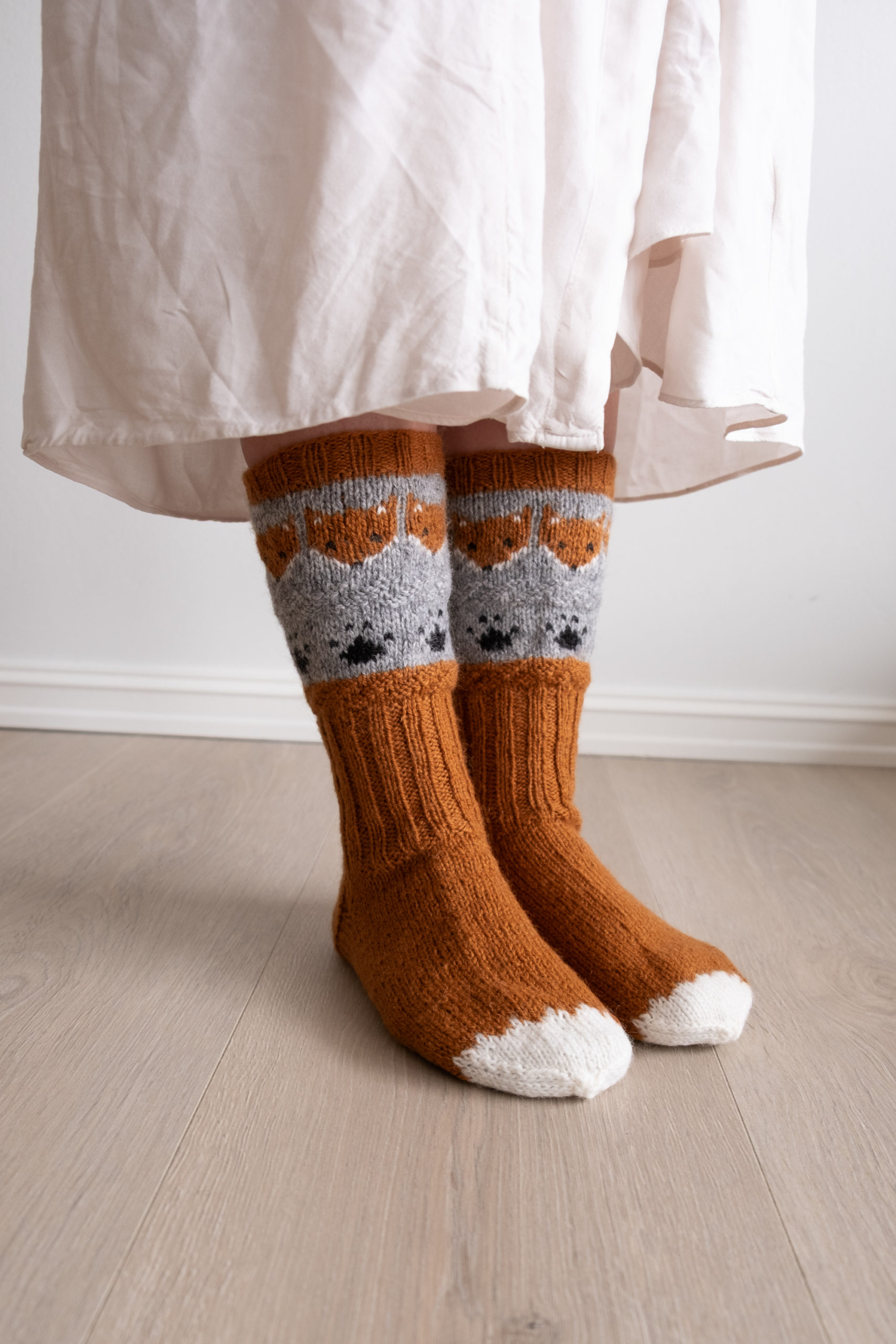 Revespor strikkes i Fjord Sokkegarn. Garnpakken inneholder oppskrift og garn nok til største størrelse.