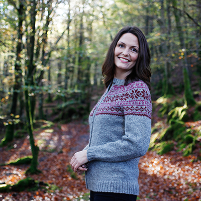 Nydelig jakke med rosemønster strikkes i Tinde pelsullgarn.
