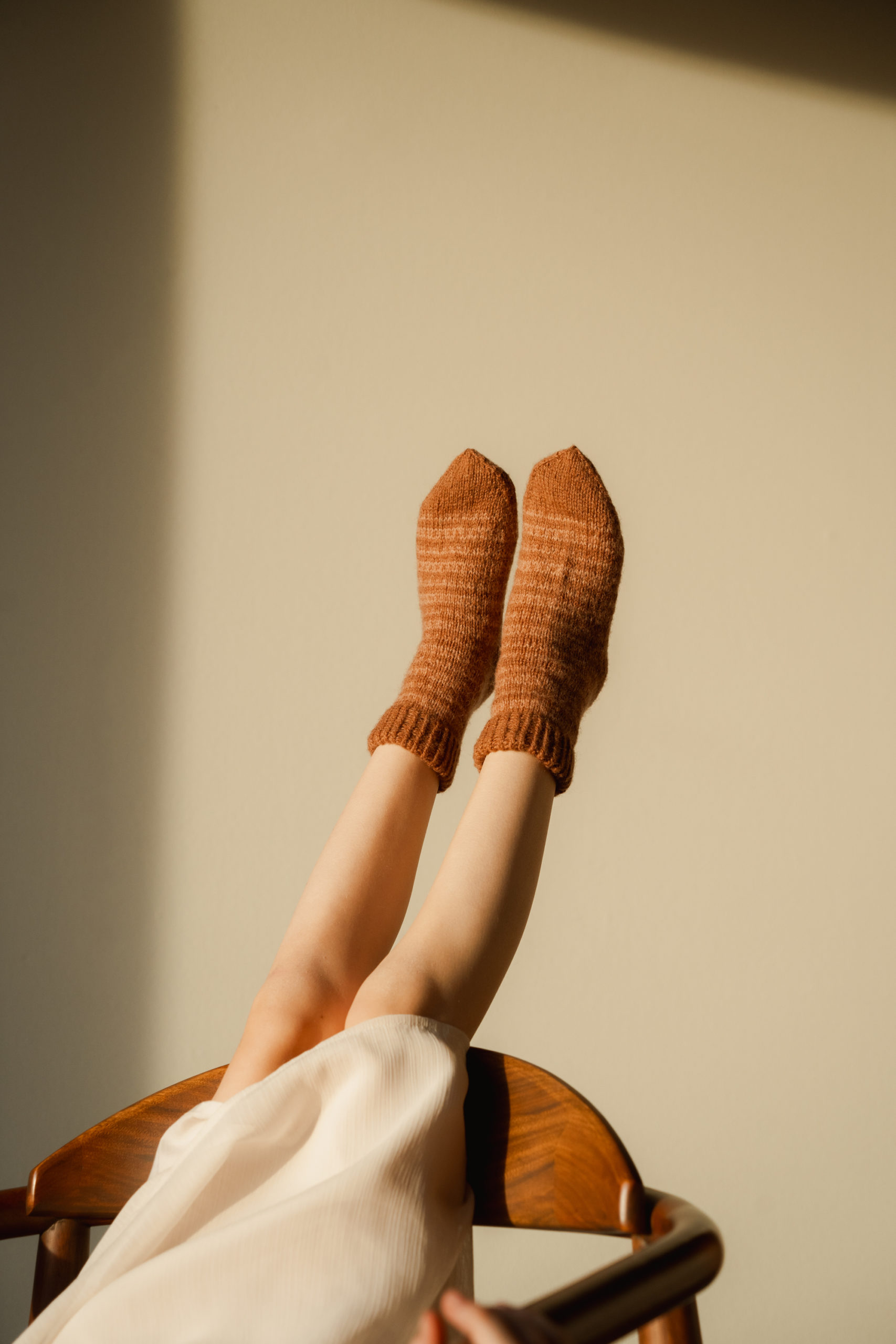 Sokker No 5 is knit in Fjære sokkegarn. The yarn kit contains a pattern and enough yarn for the largest size in both colour combinations.