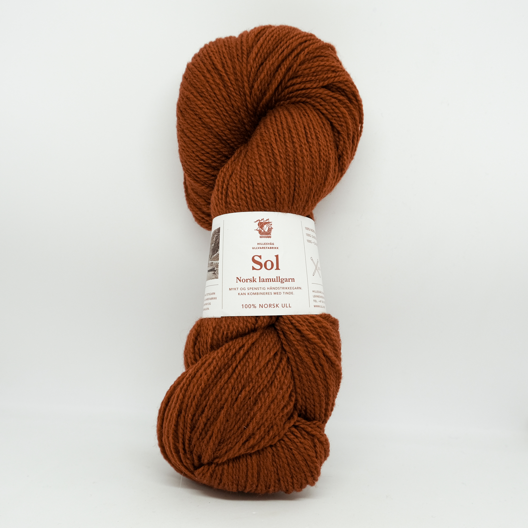 100 g = ca 290 m. Nm 5,8/2, 2 trådet, 100 % norsk ull. Leveres i hesper à 100 g.