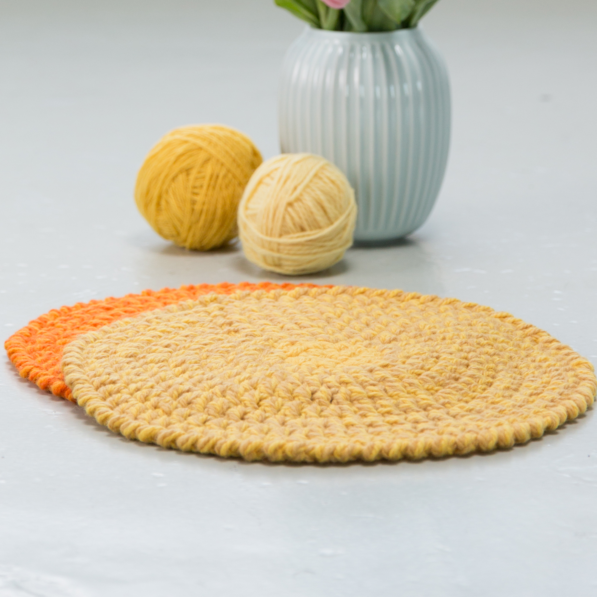 Sitterunderlagene i oppskriften er heklet i Troll ullgarn. Den passer også fint til Blåne pelsullgarn.