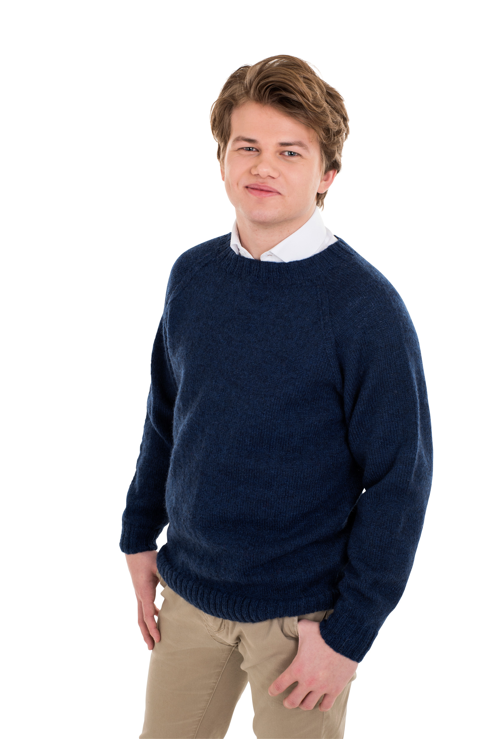 Sølje herregenser strikkes i Sølje Pelsullgarn. Garnpakken inneholder oppskrift og garn nok til den aktuelle størrelsen.