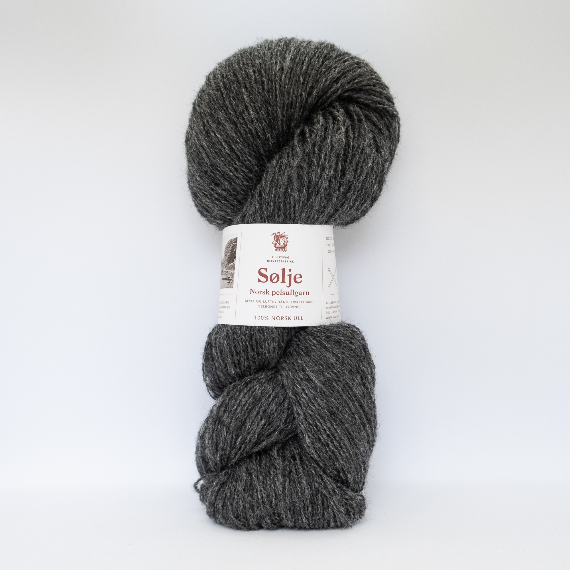 Sølje pelsullgarn er et 2-trådet, mykt og glansfullt kardegarn. Ca. 350m pr. 100g, Nm 7/2, 100% norsk ull.