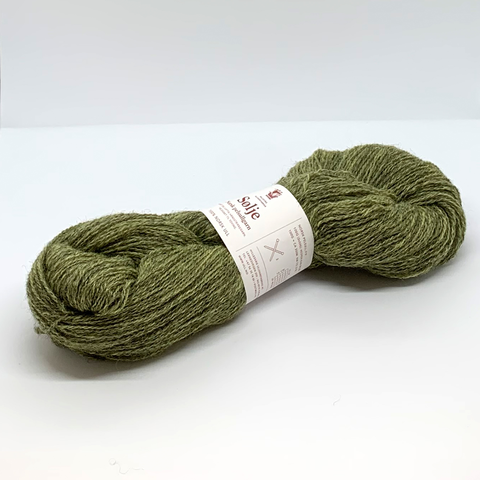 Sølje pelsullgarn er et 2-trådet, mykt og glansfullt kardegarn. Ca. 350 m pr. 100 g, Nm 7/2, 100% norsk ull.