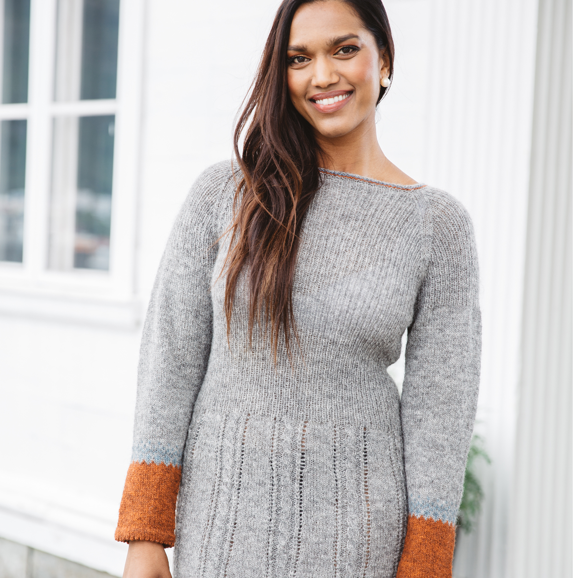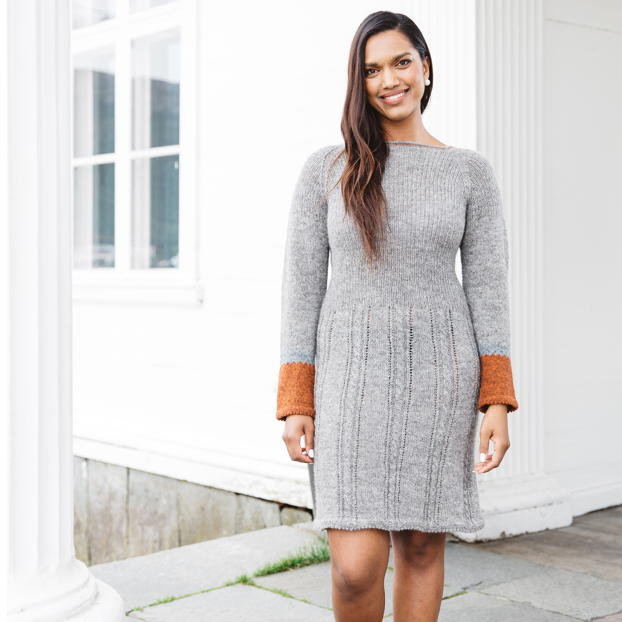 Kjolen strikkes i Sølje pelsullgarn. Garnpakken inneholder oppskrift og garn nok til den aktuelle størrelsen, S/M eller L/XXL.
