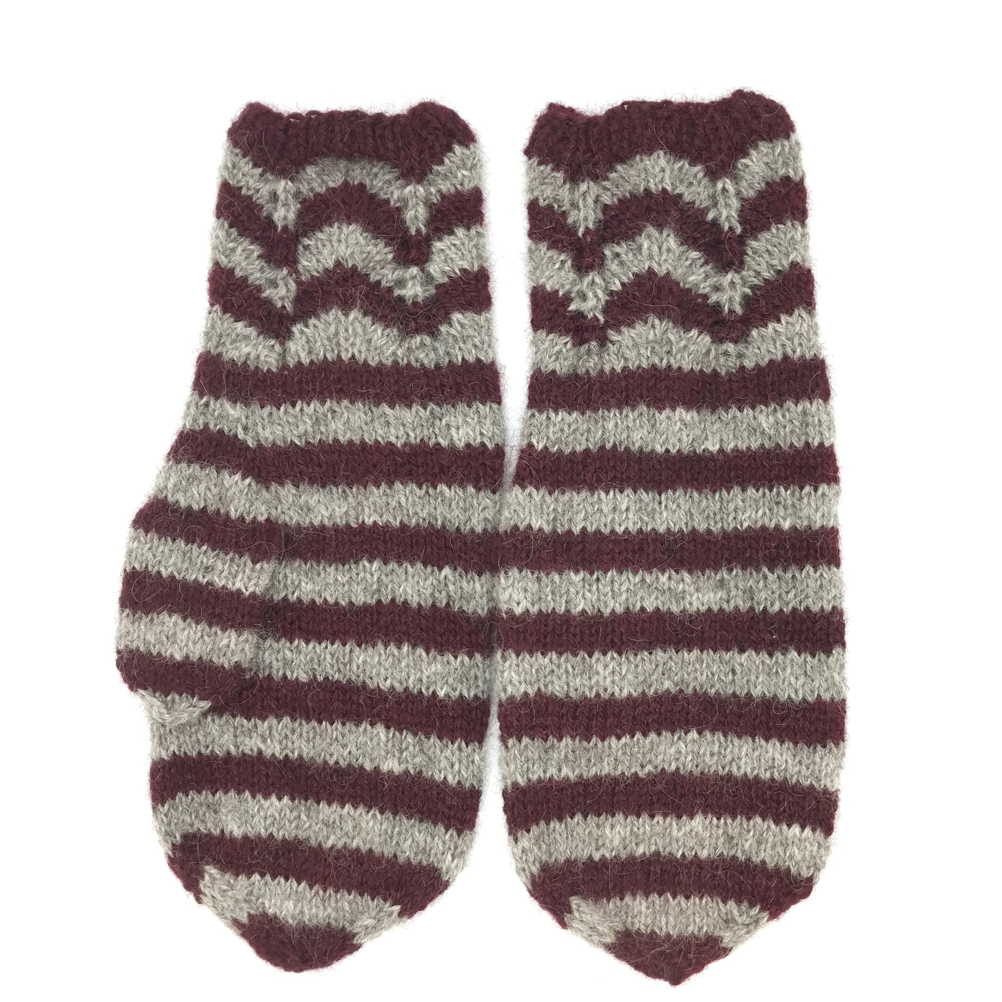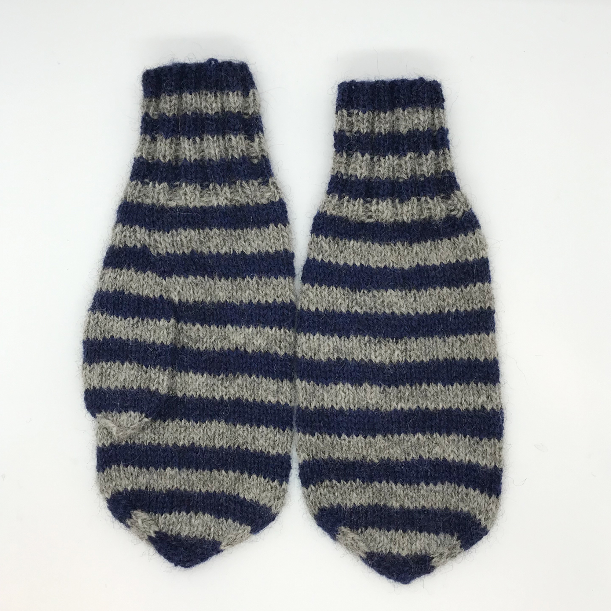 Stripevotter strikkes i Tinde pelsullgarn. Garnpakken inneholder oppskrift og garn til 1 par votter i største størrelse.