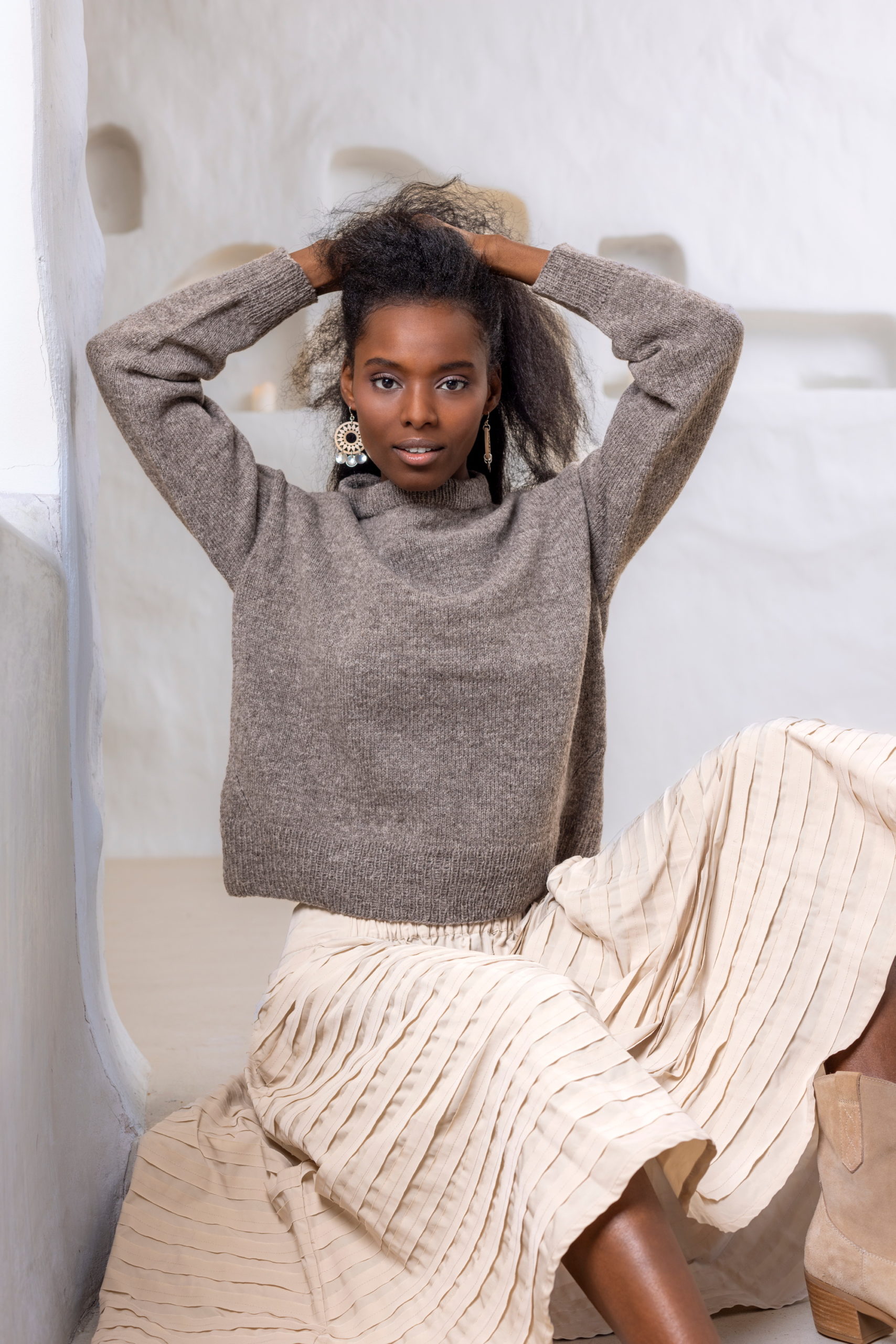 En klassisk genser med er enkelt, subtilt mønster i sidene. Genseren strikkes i Vilje Lamullgarn.