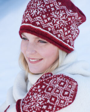 Pinneforslag: rundpinner og strømpepinner 2,5 og 3 mm. Strikker du fastere når du strikker mønsterstrikk, så strikk disse partiene på pinne 3,5 mm. Heklenål nr. 2,5.