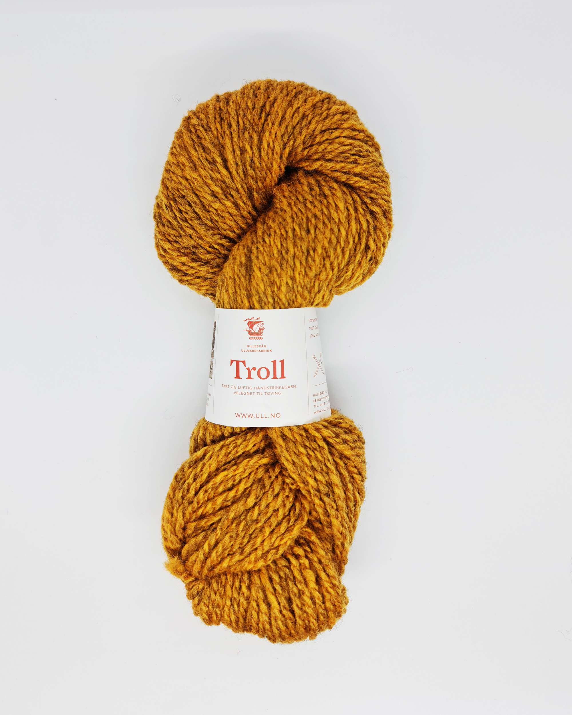Troll ullgarn er et 2-trådet, tykt og luftig håndstrikkegarn til varme ytterplagg, interiørstrikk m.m.