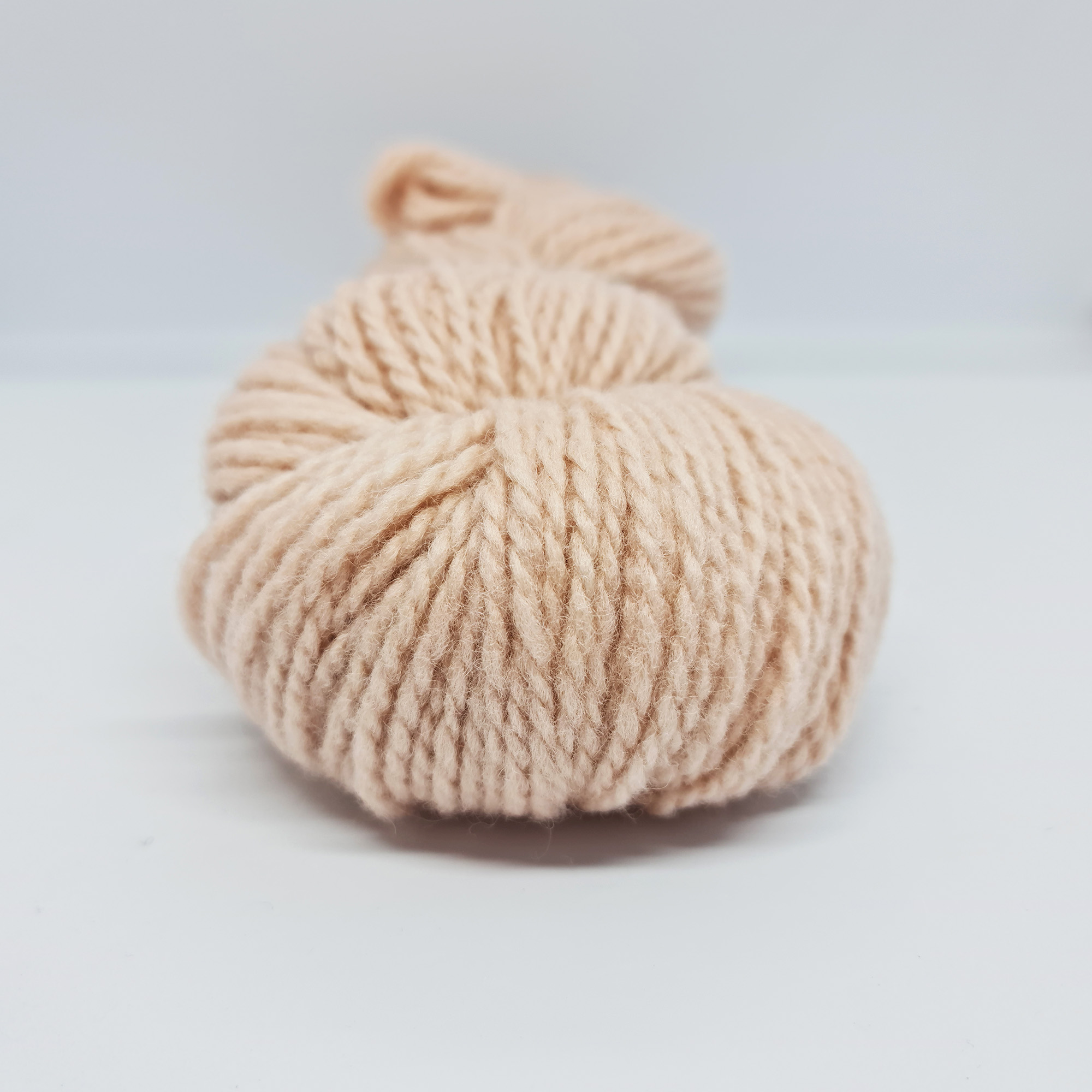 Thick and airy 2-ply woolen yarn, appr.114m/124yd per 100g, Nm 2,3/2, 100% Norwegian wool, 100g per skein. Gauge/tension: 14 sts and 22 Rows to 10cm (4in.) over st.st. using 5,5mm (US9) needles