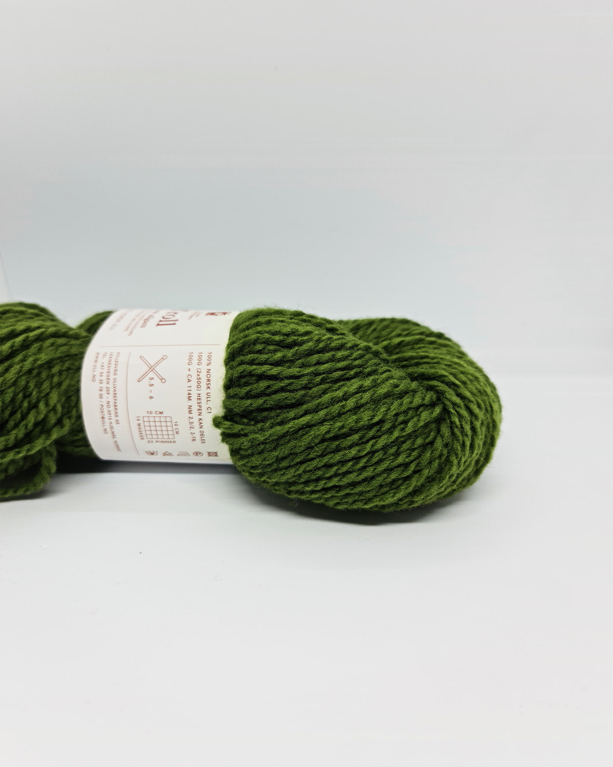 Ca. 114 m pr. 100 g, Nm 2,3/2, 100% norsk ull. Pinner 5.5 – 6 mm.