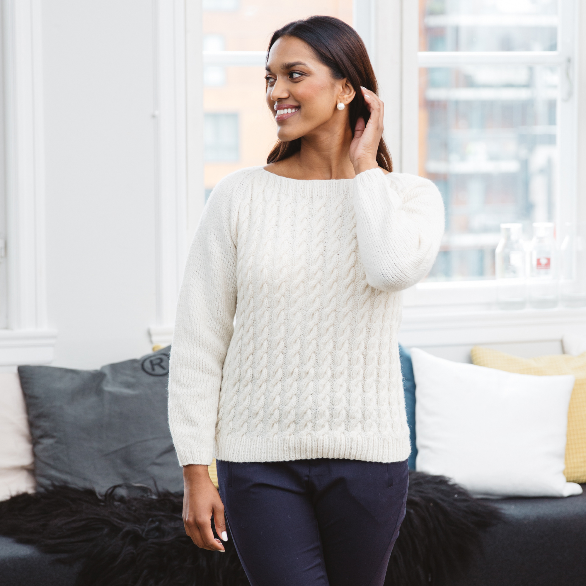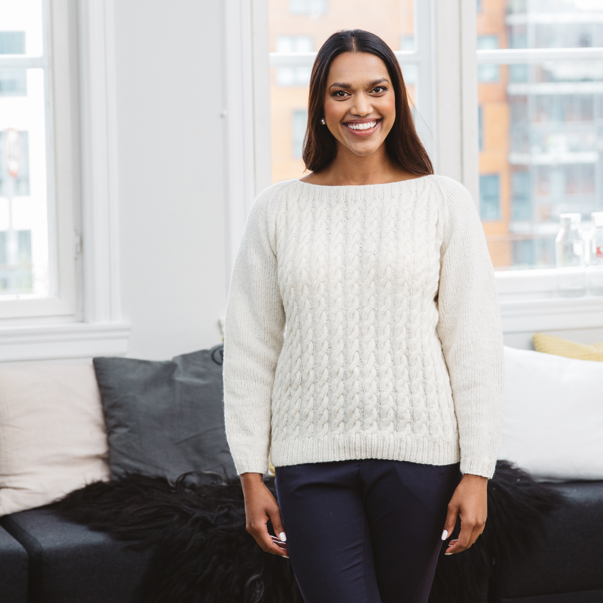 Genseren strikkes i Sol lamull. Garnpakken inneholder oppskrift og nok garn til den aktuelle størrelsen.