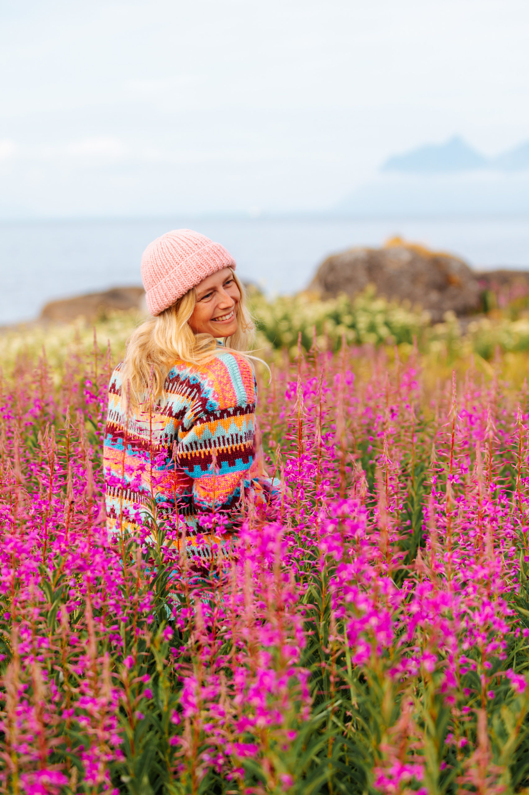 Mange strikker strammere når de strikker mønster med flere farger. Gå gjerne opp en halv pinnestørrelse på mønsteret ved behov., Vi anbefaler å bruke de strikkepinnene du trenger for å oppnå riktig strikkefasthet. Strikk en prøvelapp før du går i gang for å sjekke hvilken pinnestørrelse som blir best for deg.